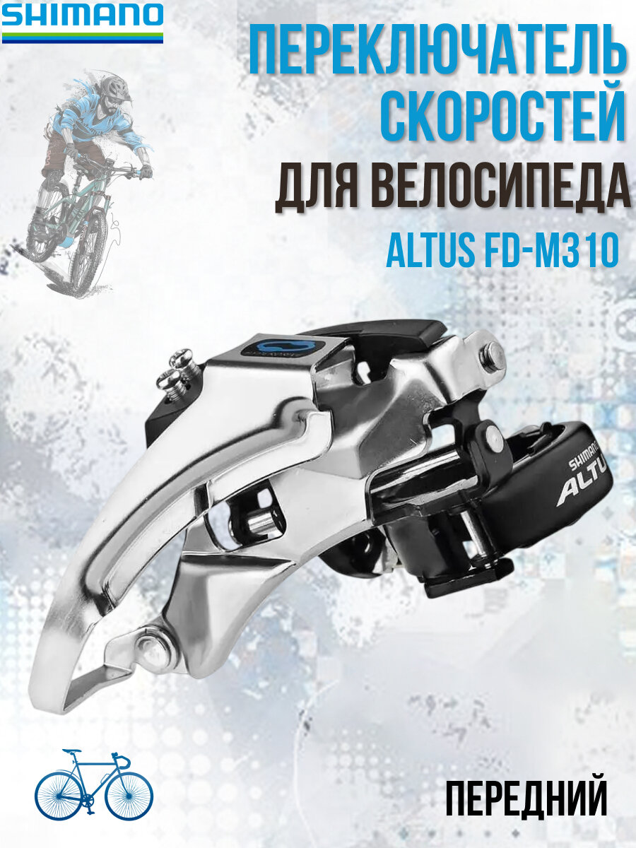 10 цен на Переключатель скоростей передний для велосипеда Altus FD-M310 48-28/42-22T 31,8мм, универс тяга
