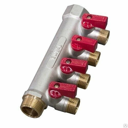 Отзывы на Коллектор латунный шаровыми кранами на 1/2" (наружная резьба) TeRma (3/4 в-н, с 4)