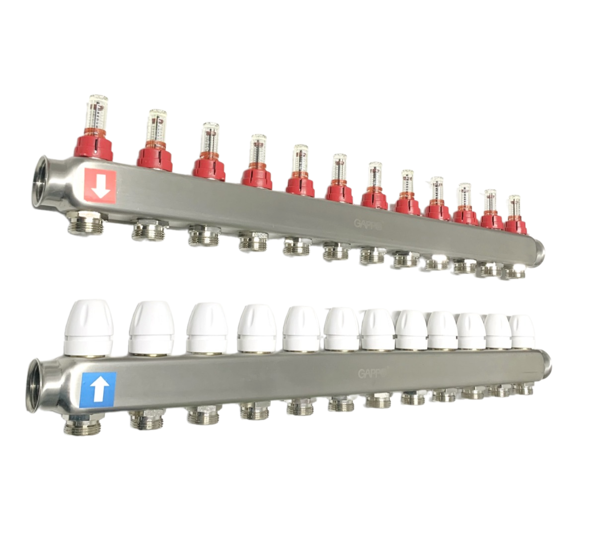 Коллекторная группа с расходомерами из нержавеющей стали для теплого пола