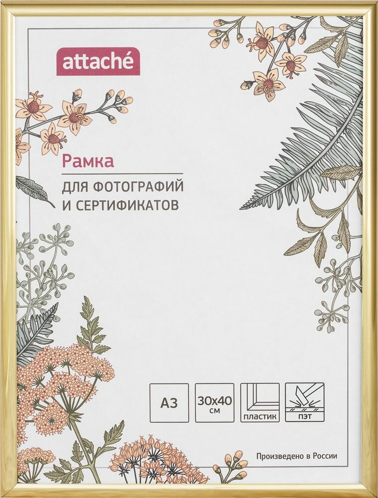 Рамка для фото Attache, А3, 30 x 40 см, пластиковый багет 14 мм, золотистая информация: