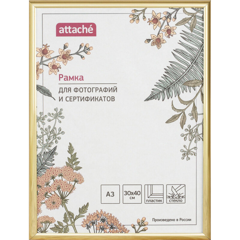 Рамка для фото Attache, А3, 30 x 40 см, пластиковый багет 14 мм, золотистая 311 ₽