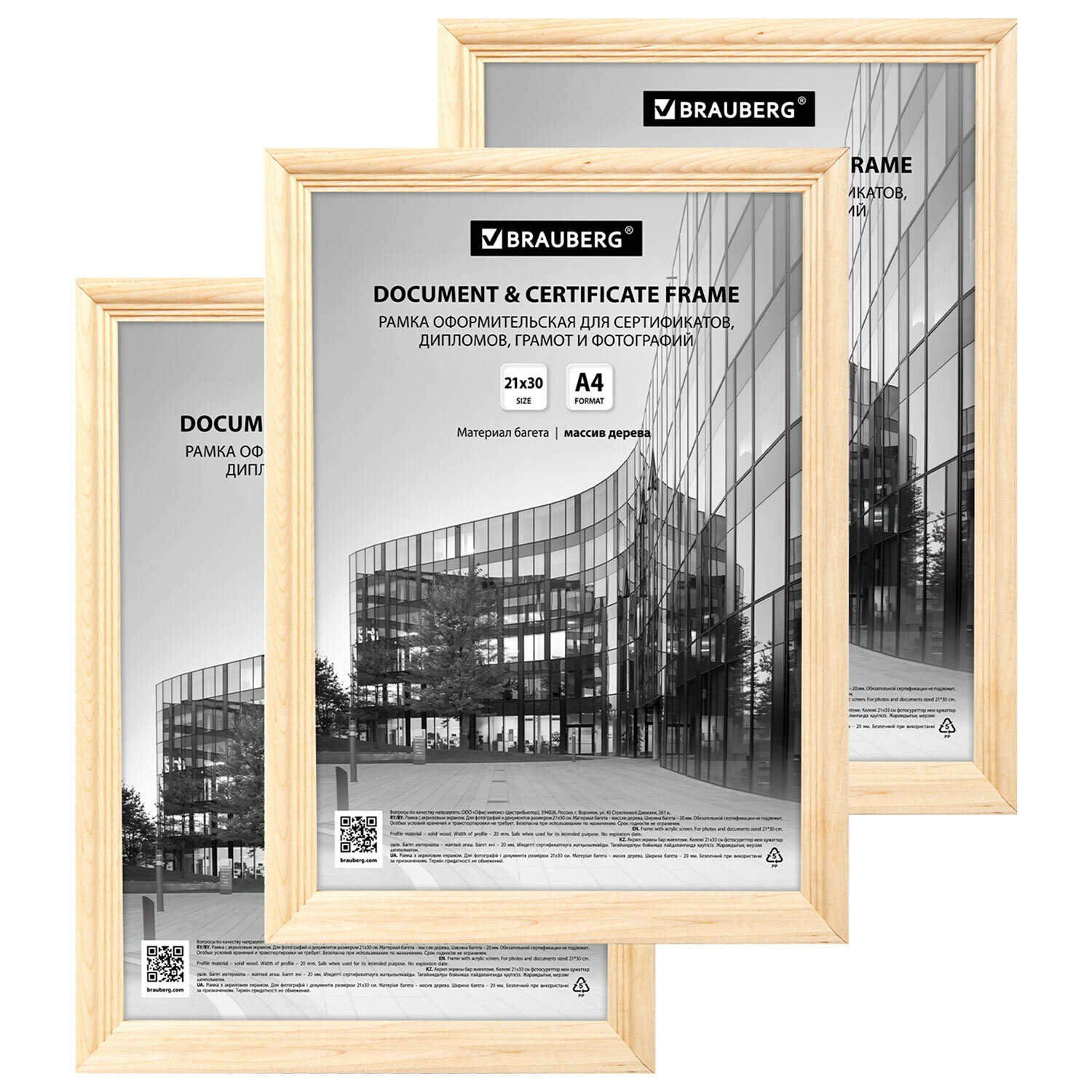 Рамка небьющаяся Brauberg 21*30см, комплект 3шт, багет 20мм дерево, Business, цв натур дерево 391354 825 ₽