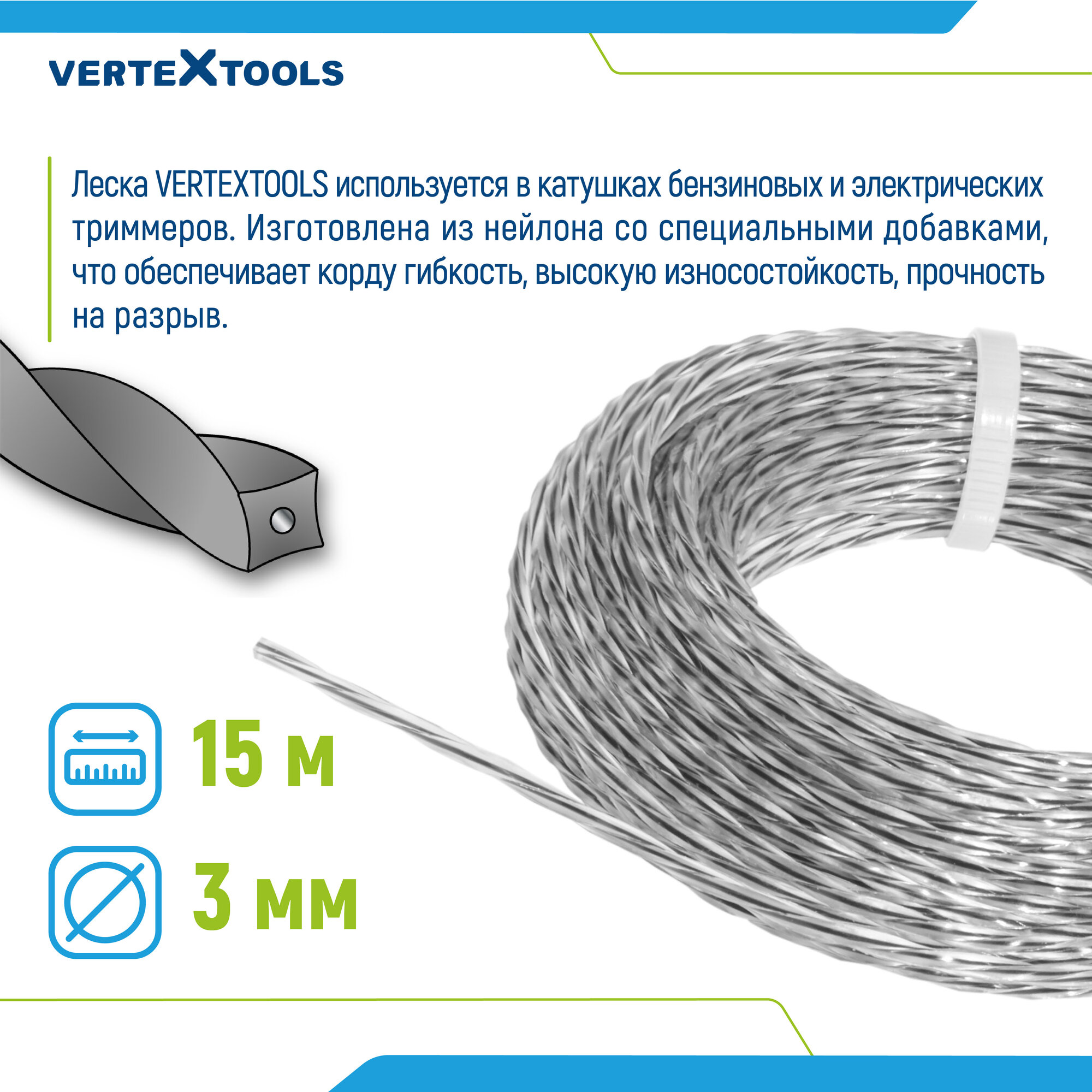 Леска для триммера VertexTools 3 мм 15 м витой квадрат с сердечником информация: