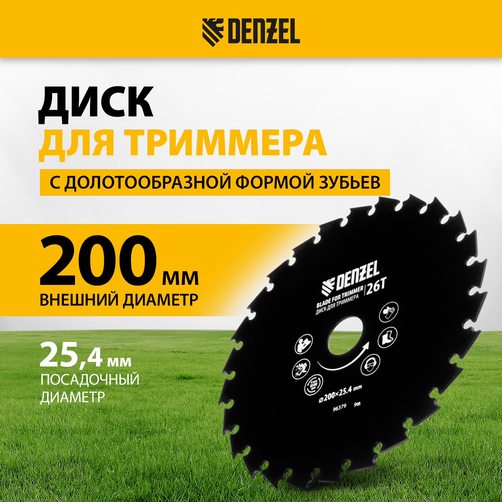 Диск для триммера c долотообразной формой зуба Denzel 200 х 25, 4 мм, 26 зубов 96379 информация: