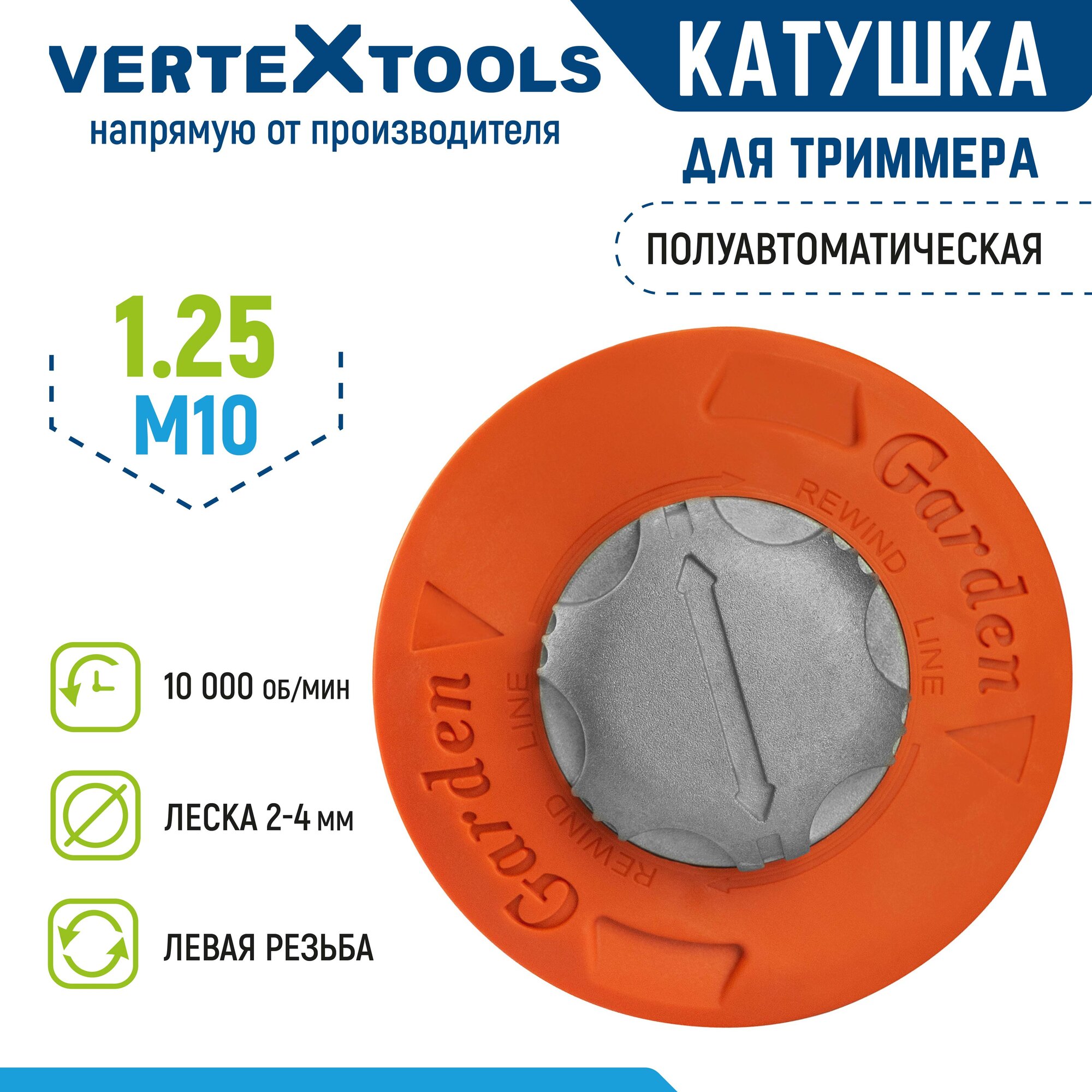 10 цен на Катушка для триммера VertexTools головка A002 левая резьба M10x1.25 леска 2.4 мм
