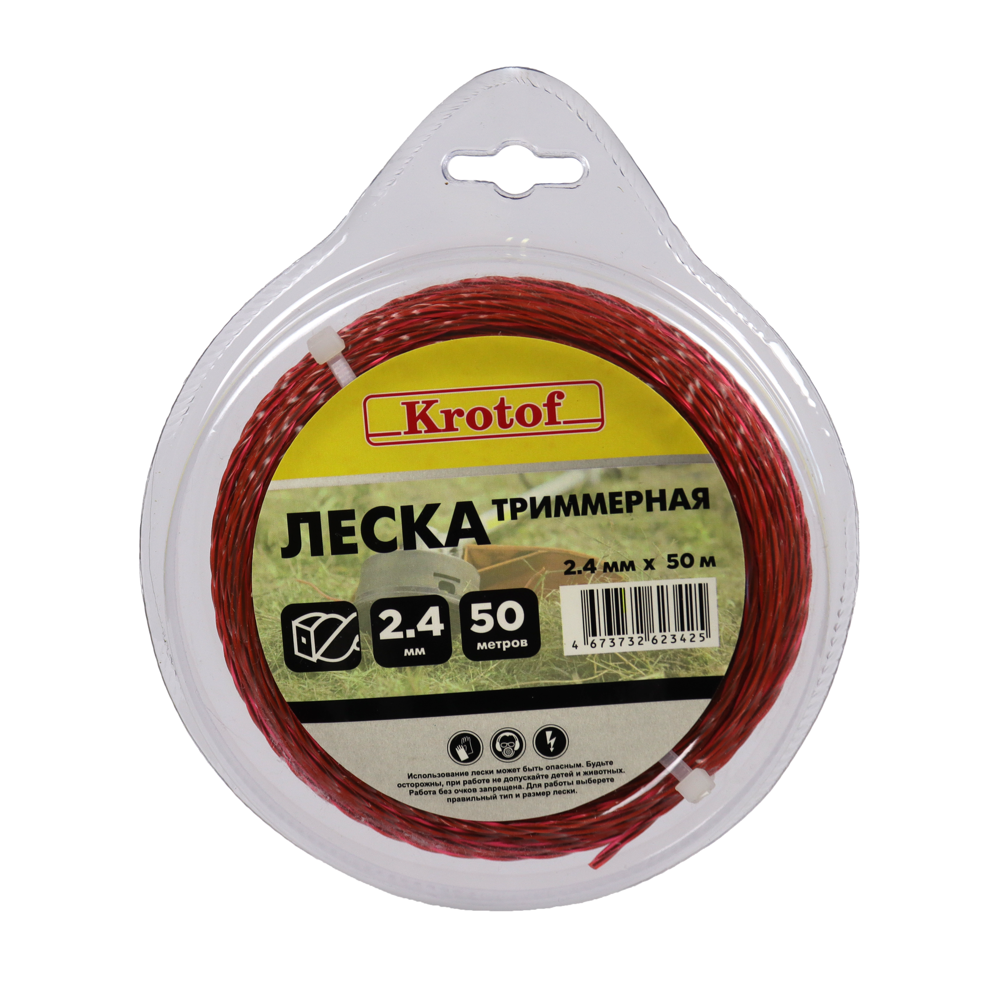 Леска для триммера 2,4 мм х 50м (витой квадрат с сердечником, блистер, красный) Krotof / кротоф информация: