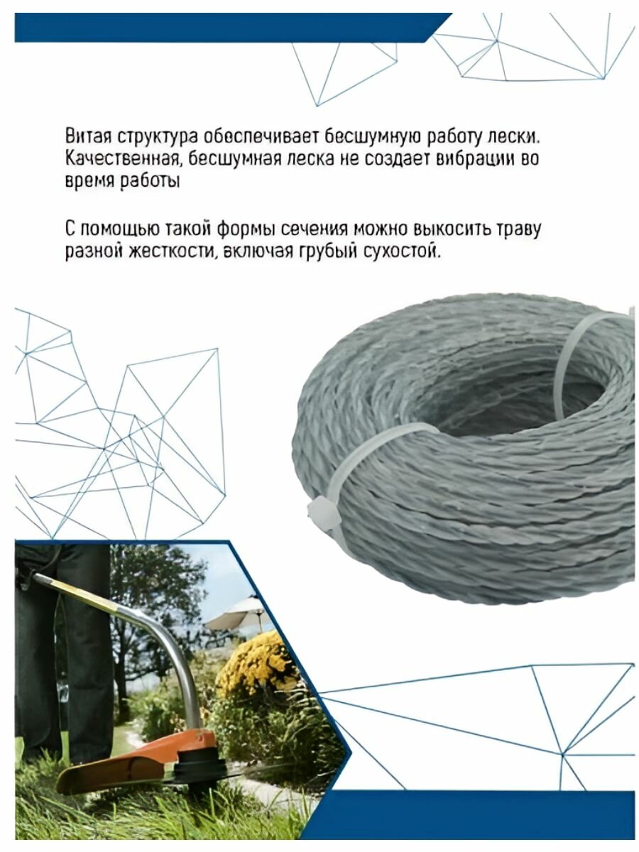 10 цен на Леска для триммера, 2мм, витой квадрат с сердечником 15м, VERTEXTOOLS