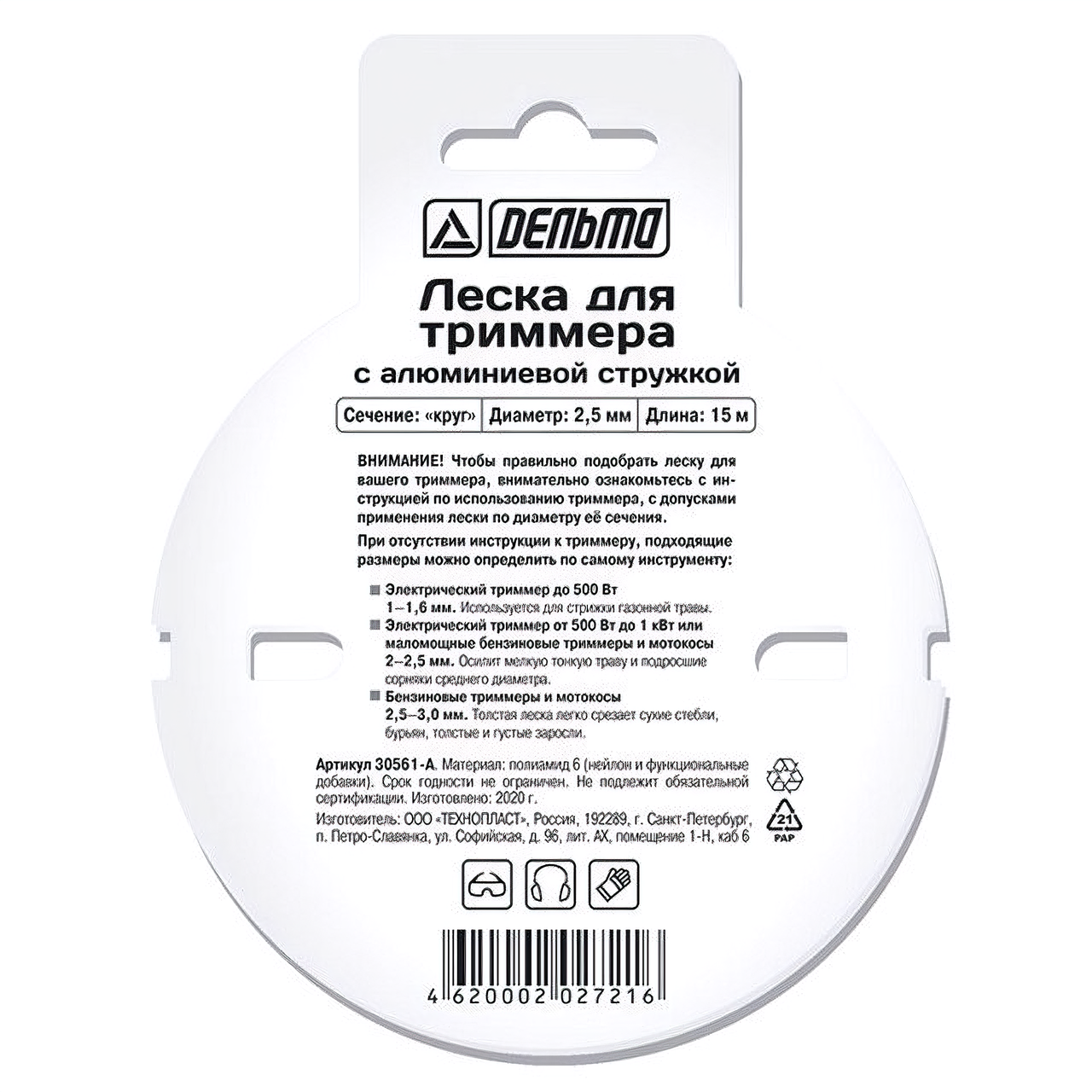 | Дополнительная информация | Леска для триммеров армированная, 2,5 мм, 15 м, круг |