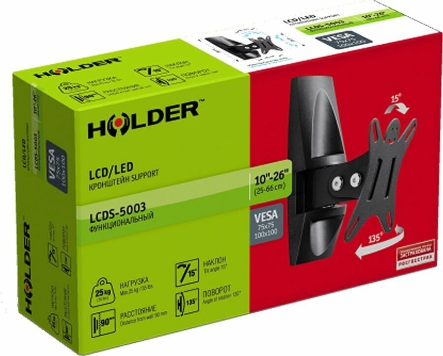 Кронштейн для телевизора 10"-26" HOLDER LCDS-5003 наклонно-поворотный, до 25 кг, черный