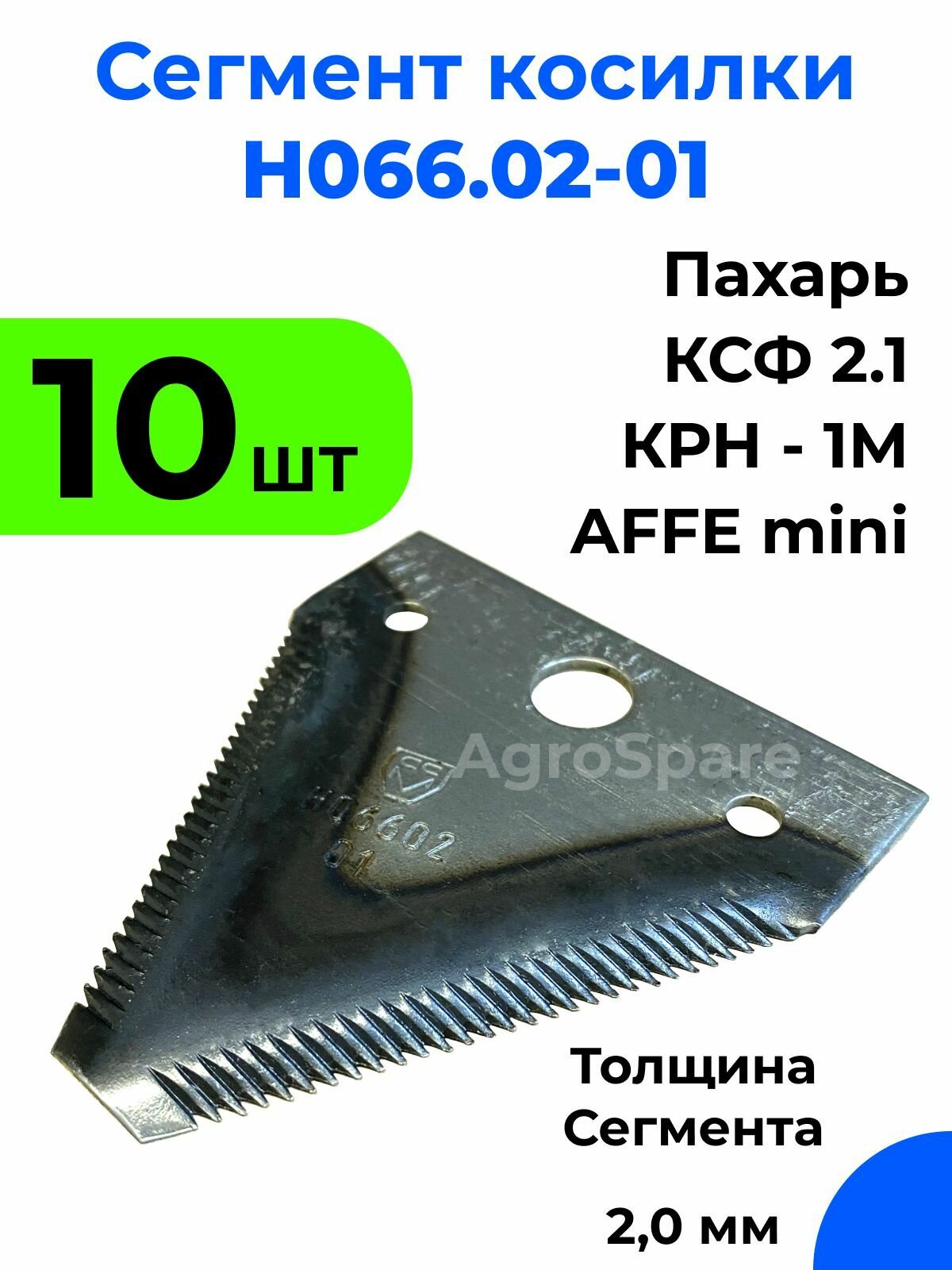 Сегменты на косилку Н066.02-01 Пахарь, для жаток комбайнов, Сегмент КСФ - 10 шт. информация: