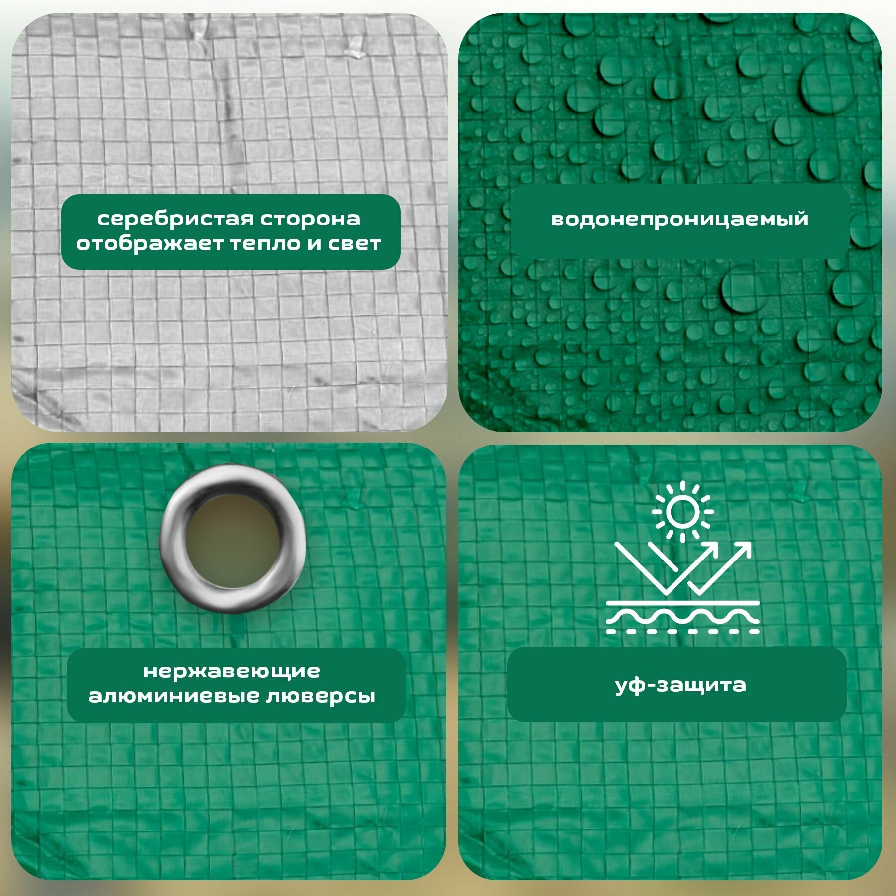 Тент универсальный защитный Zolder 345067 3х4м плотность 115 г/м2 укрывной с металлическими люверсами зеленый/серебро информация: