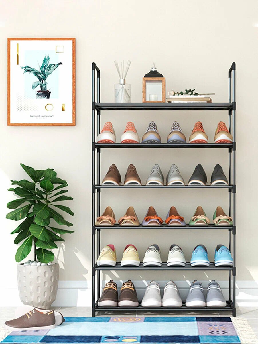Отзывы на Обувница в прихожую, этажерка для обуви, металлическая, разборная, 43х28х106 см, черная