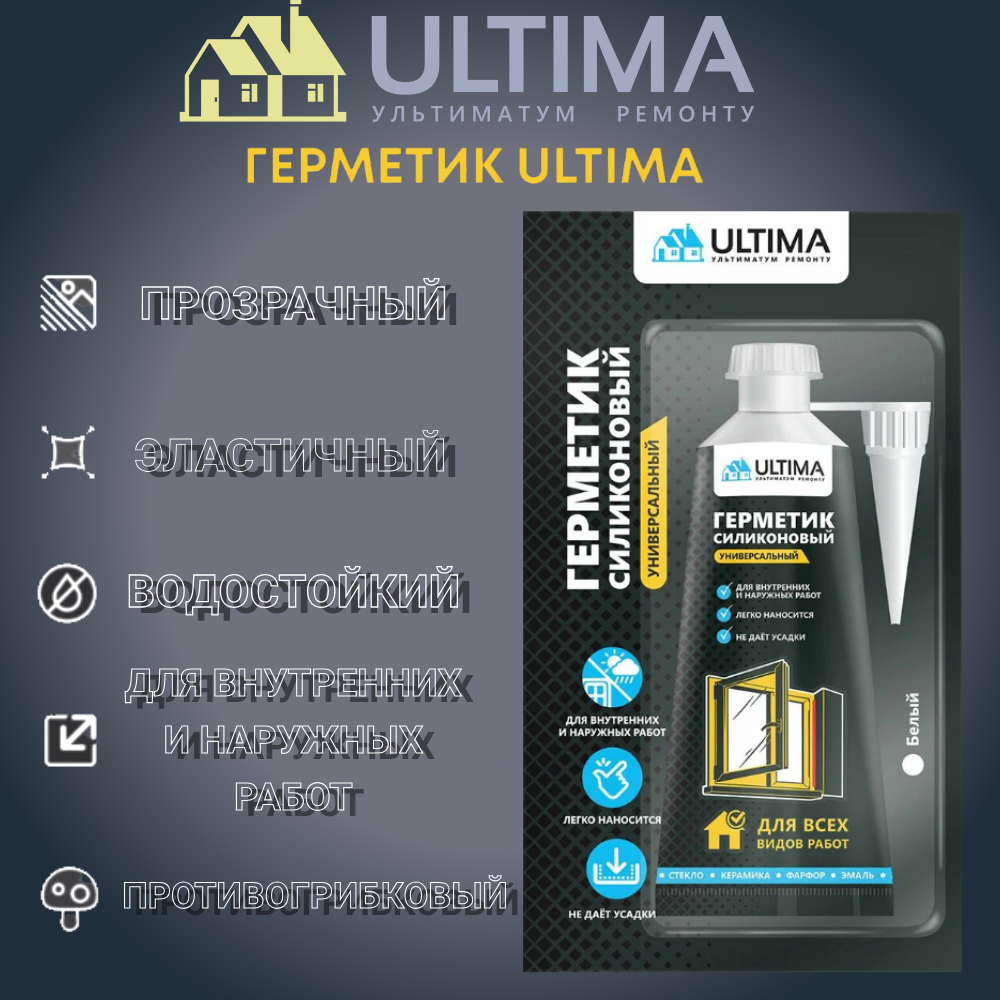 Герметик силиконовый универсальный Ultima бесцветный, 80мл информация: