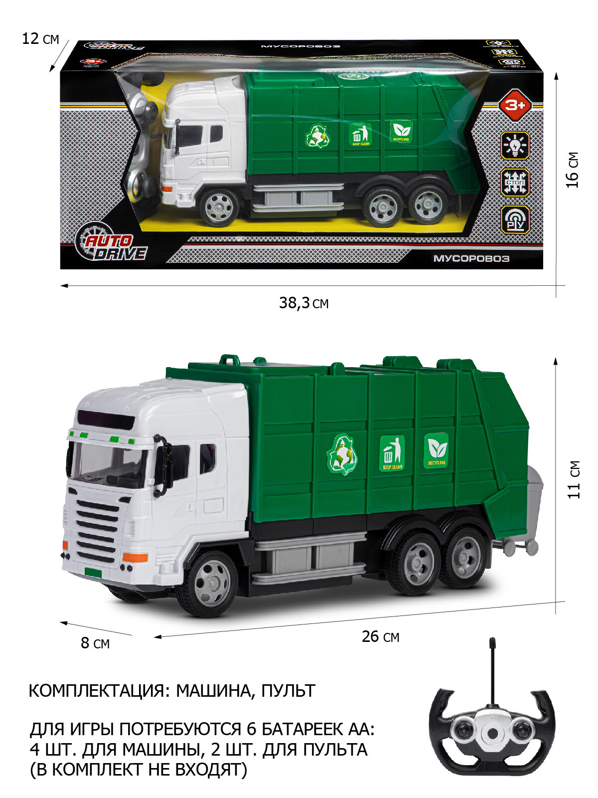 Мусоровоз Autodrive JB1167927, 26 см