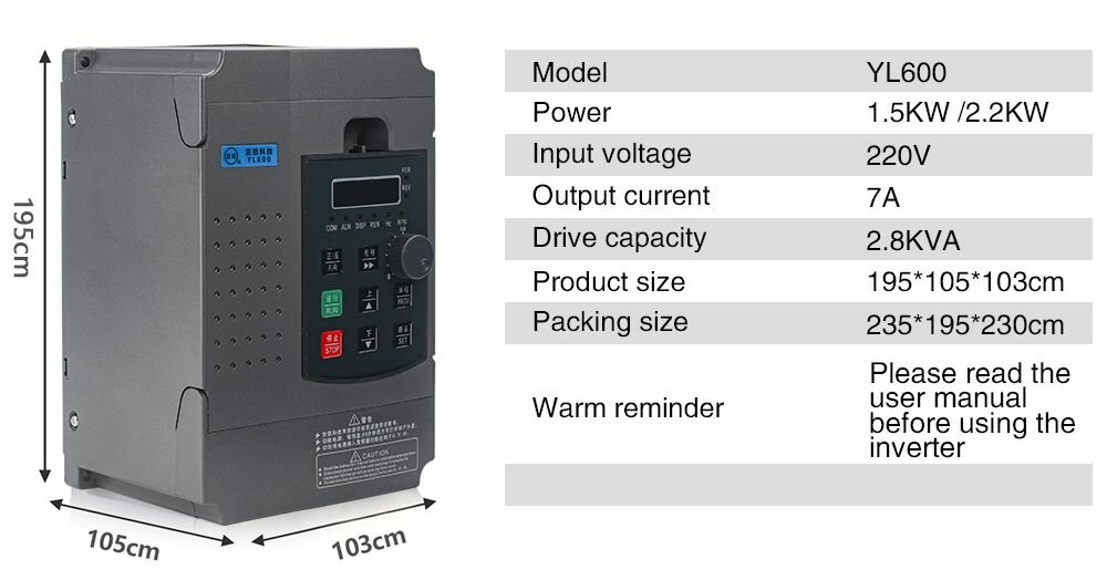 | Дополнительная информация | 1*2.2kw 220v инвертор; 1*инструкция. |