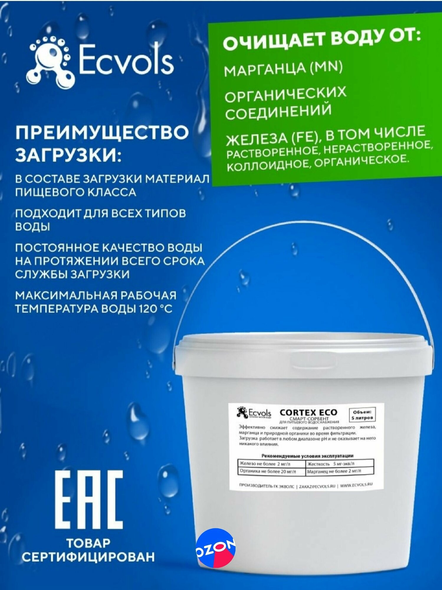 Загрузка смарт-сорбент Cortex Eco, очищение воды, удаление железа, марганца, 5 литров информация: