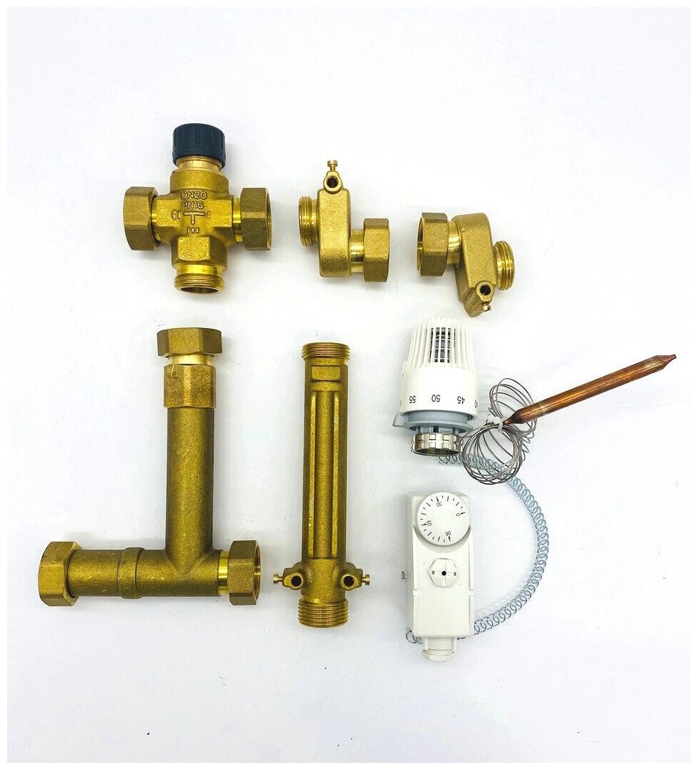 | Комплектация | термостатический регулировочный клапан с термоголовкой, погружной датчик температуры теплоносителя, термометры на подающей и обратной трубе |