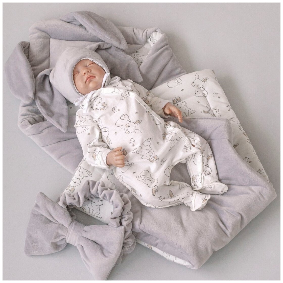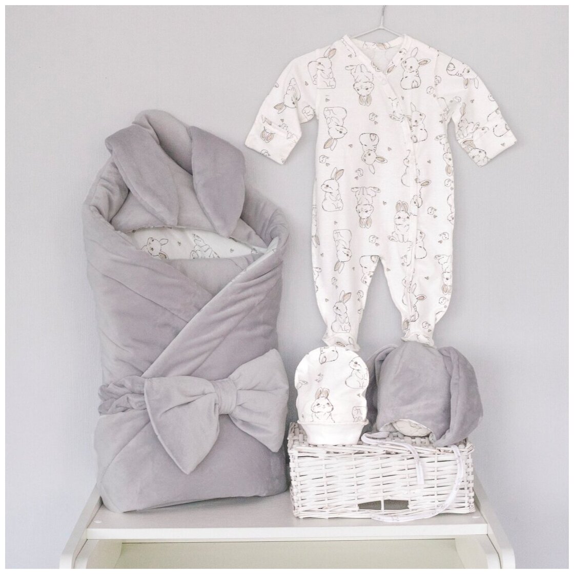 Комплект на выписку 5 предметов "Зайка", зимний, серый информация: