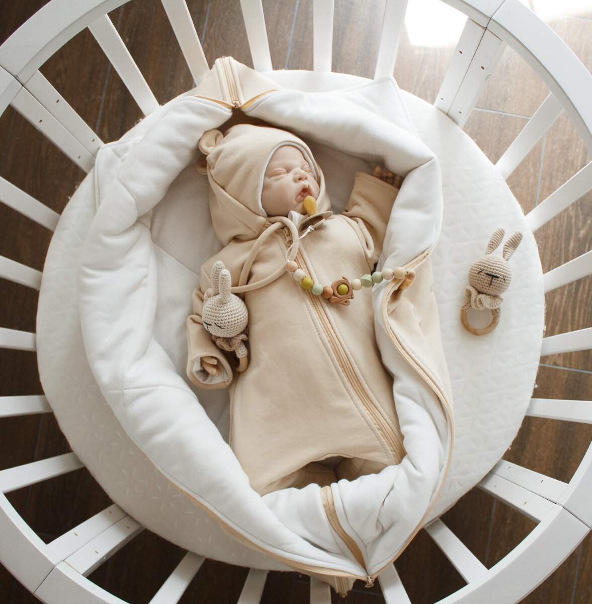 Демисезонный трикотажный детский комплект для новорожденного 62 размер (от 0-3мес), 3 предмета, бежевый 5 200 ₽