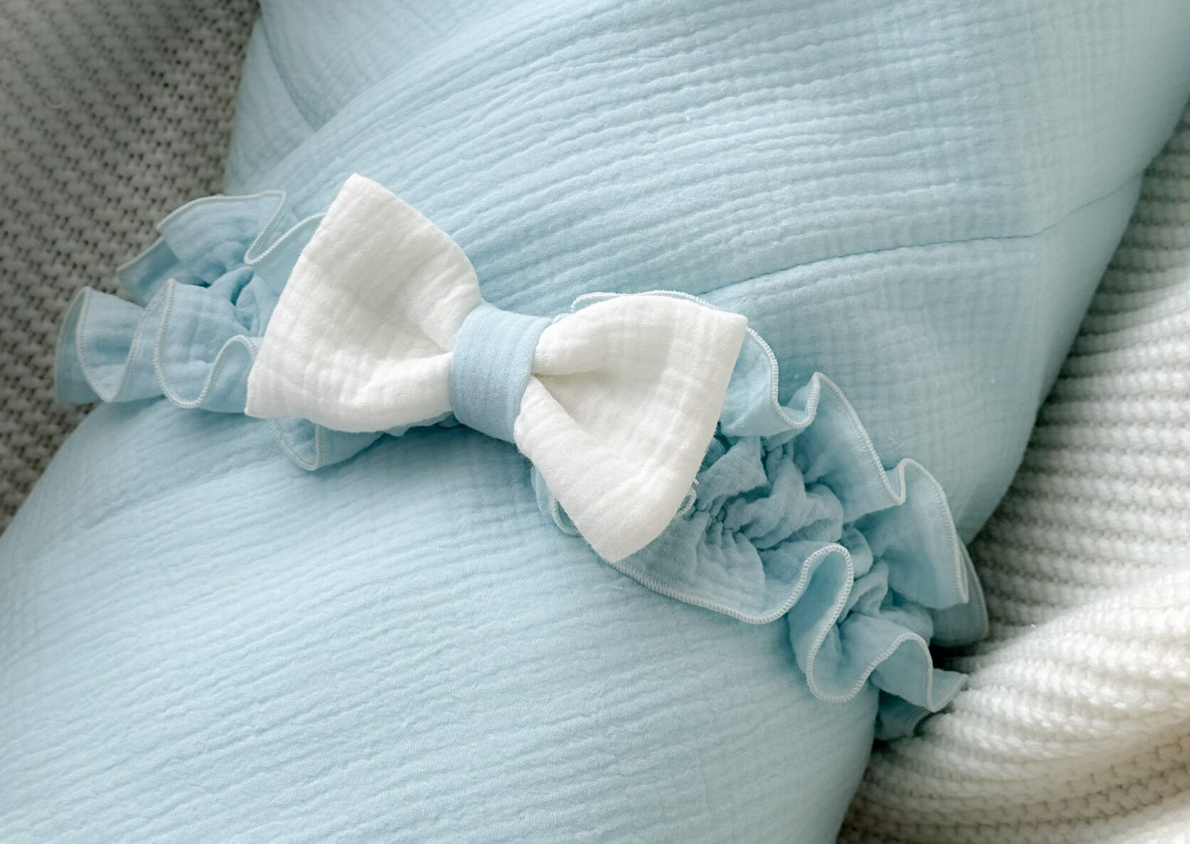 Конверт-одеяло муслиновое летнее, голуб. + бант информация: