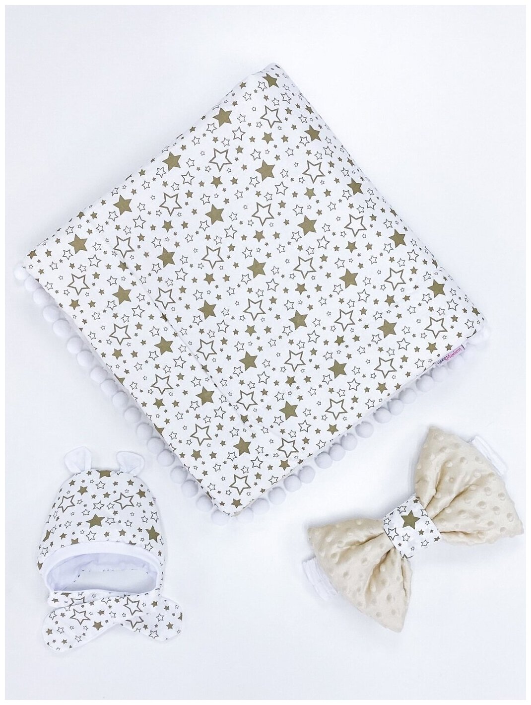 Конверт-одеяло "Звездочки", бежевые + бант + шапочка, демисезон