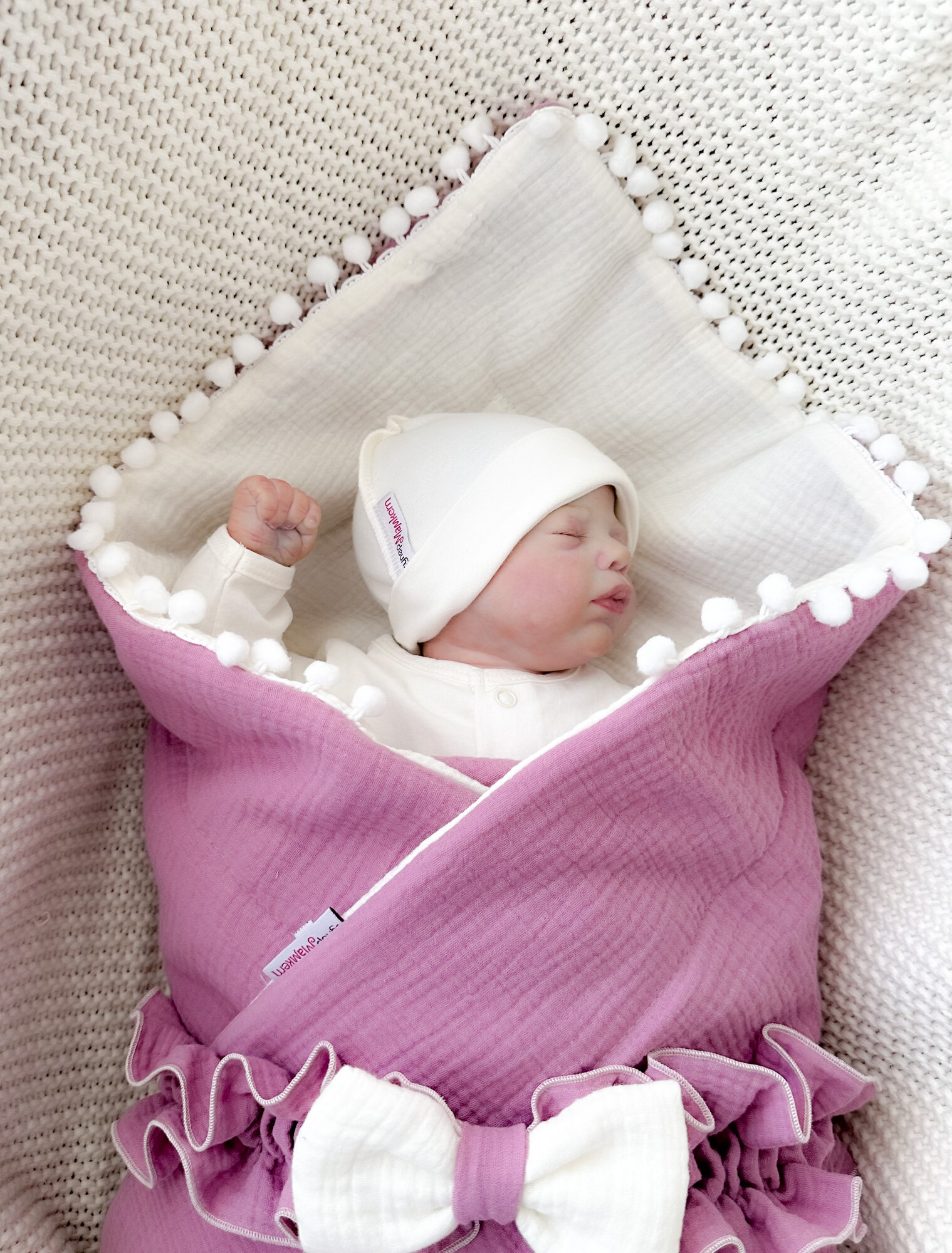 Конверт-одеяло муслиновое летнее, малина + бант информация: