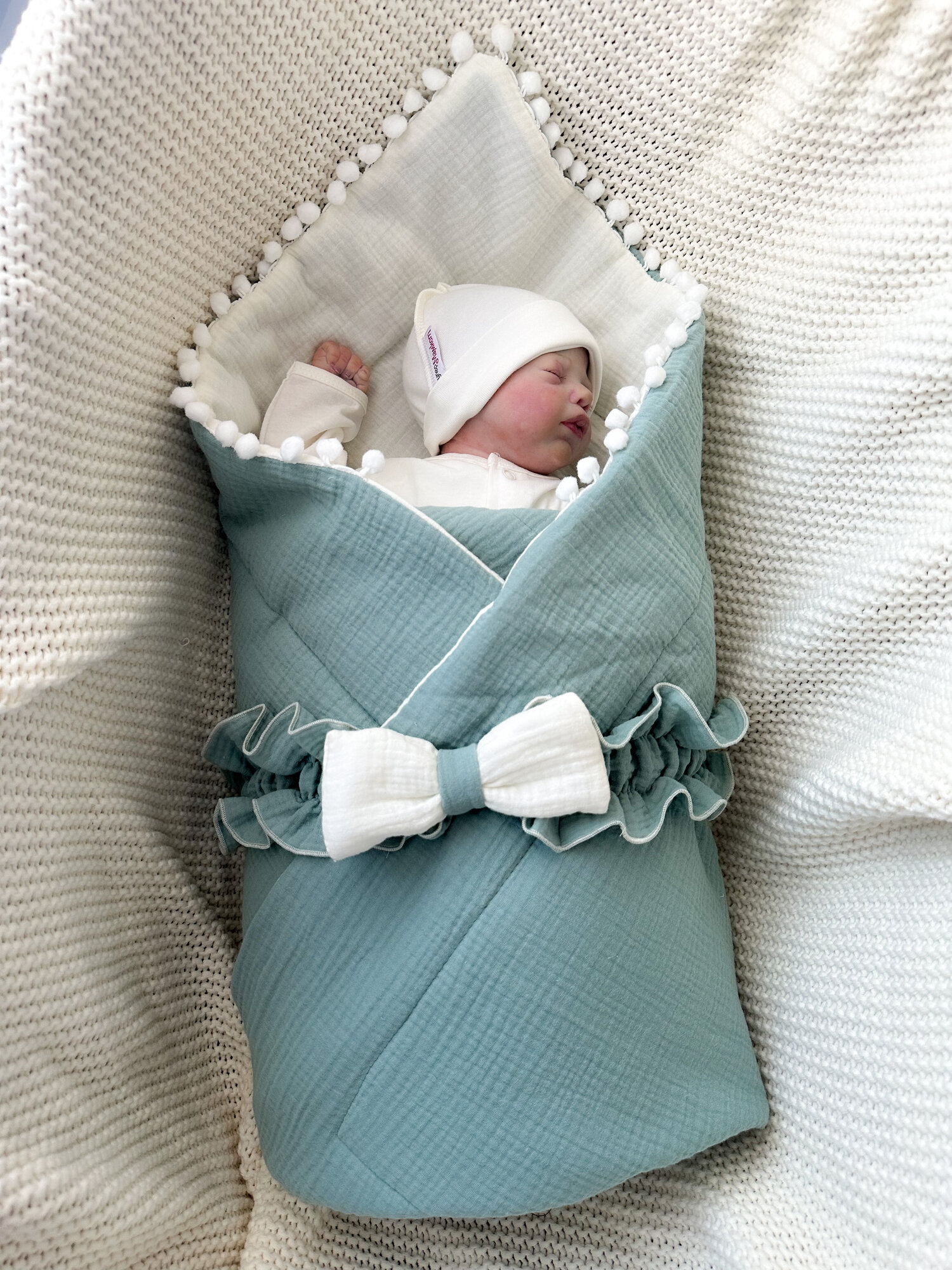 Конверт-одеяло муслиновое летнее, морская волна. + бант 2 630 ₽