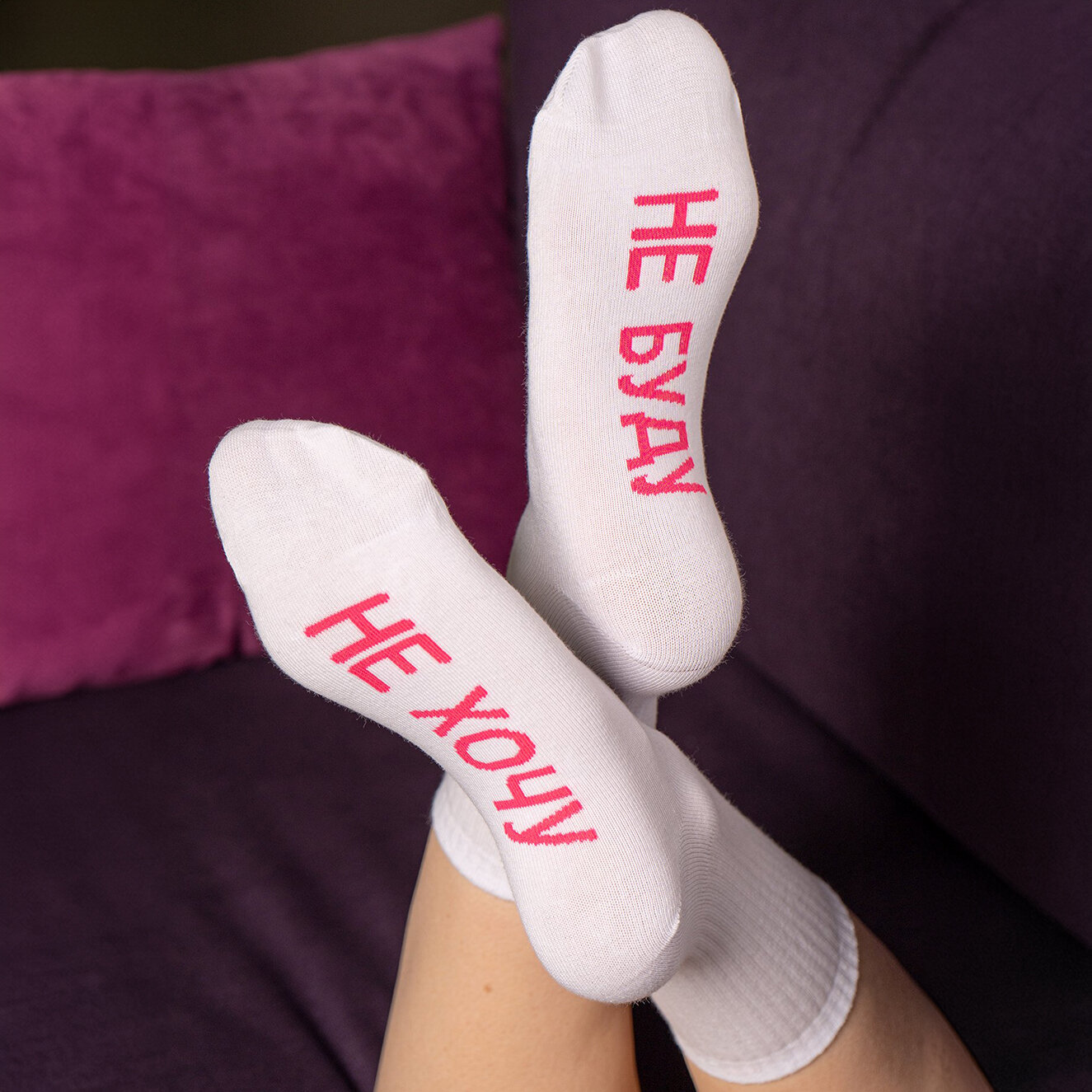 Хлопковые носки с добавлением эластана Happy Fox HF0159 не.хочу.не.буду.белый.розовый информация: