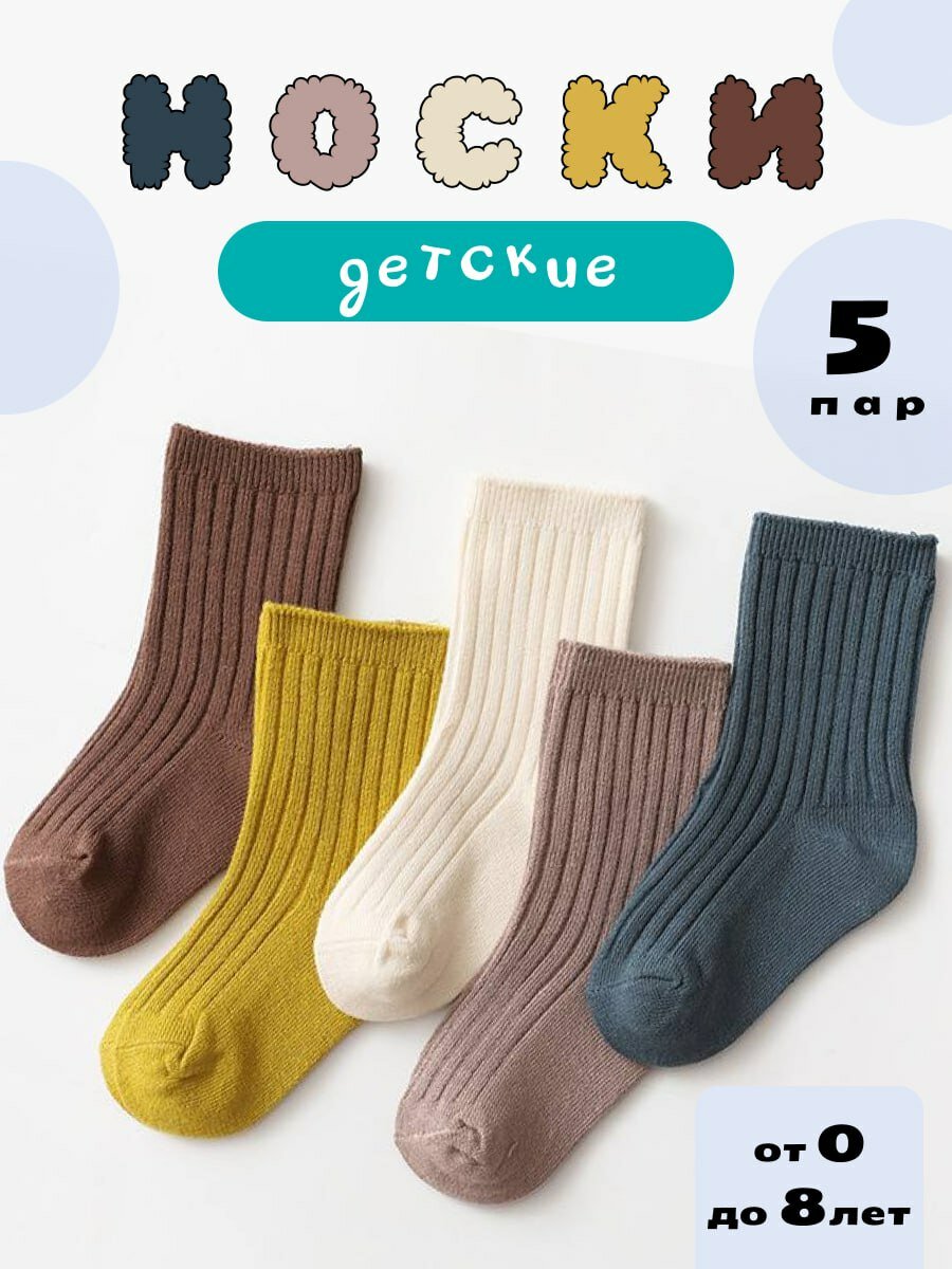 набор детских носков 5 пар, детские в рубчик однотонные на 3-5 лет 799 ₽