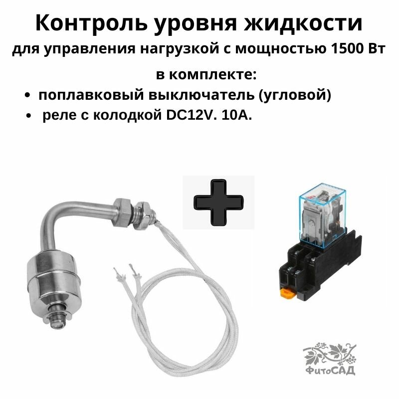 Поплавковый выключатель, угловой + Реле с колодкой DC12V, 10А. информация: