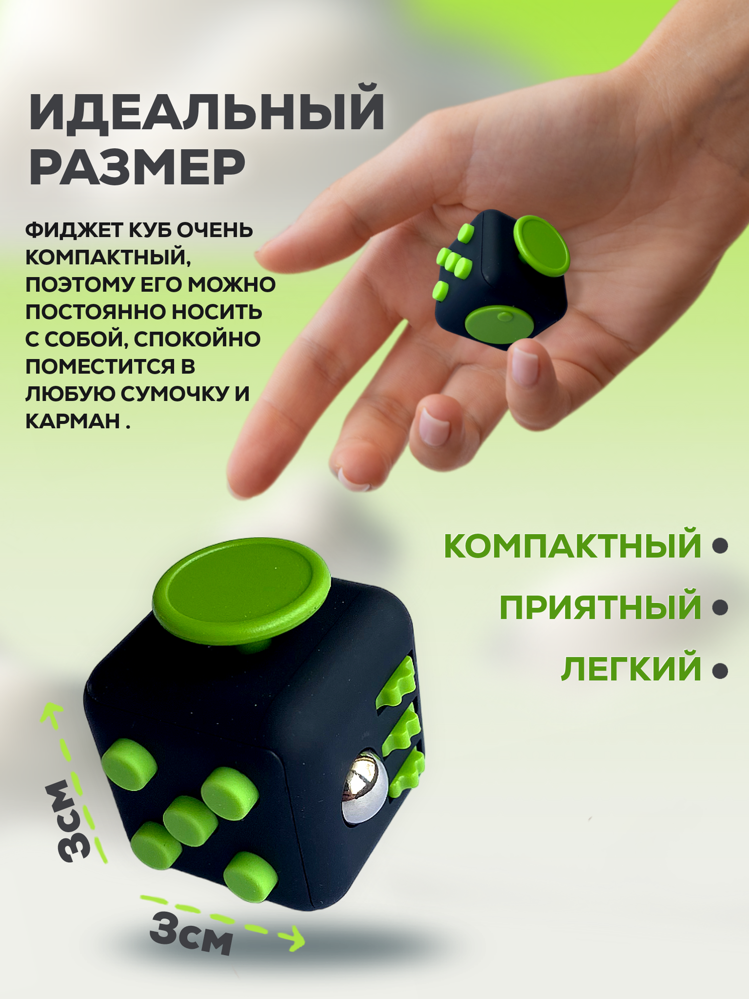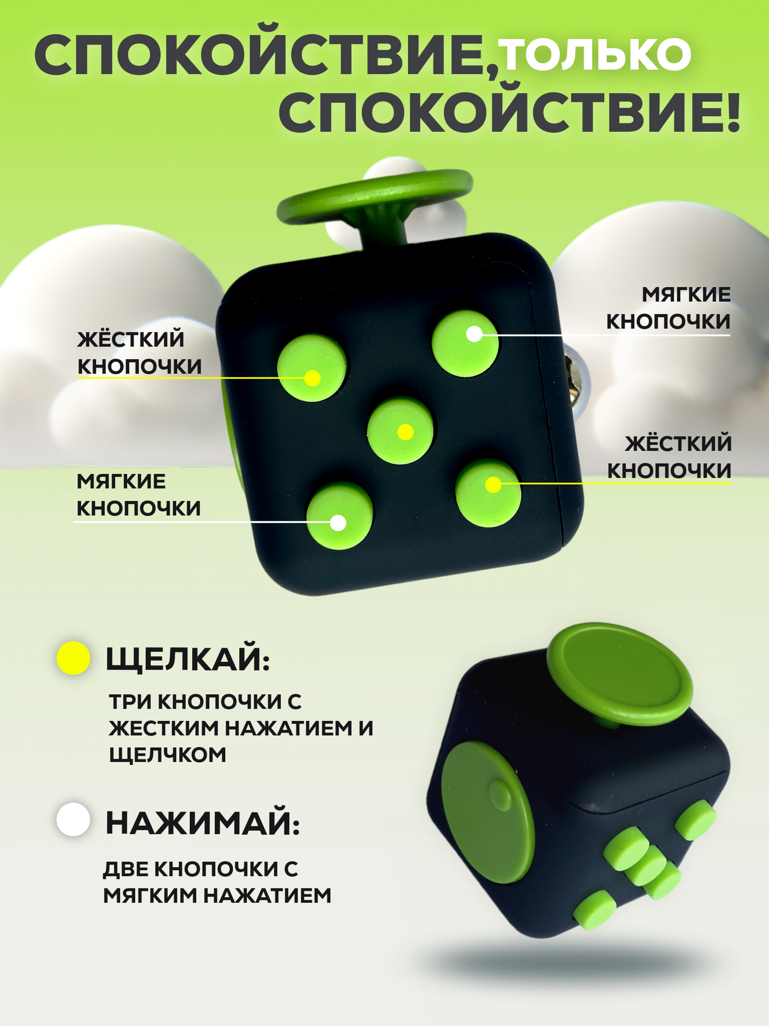 Отзывы на Кубик антистресс с кнопками для рук успокаивающий фиджет куб fidget черный с зелеными