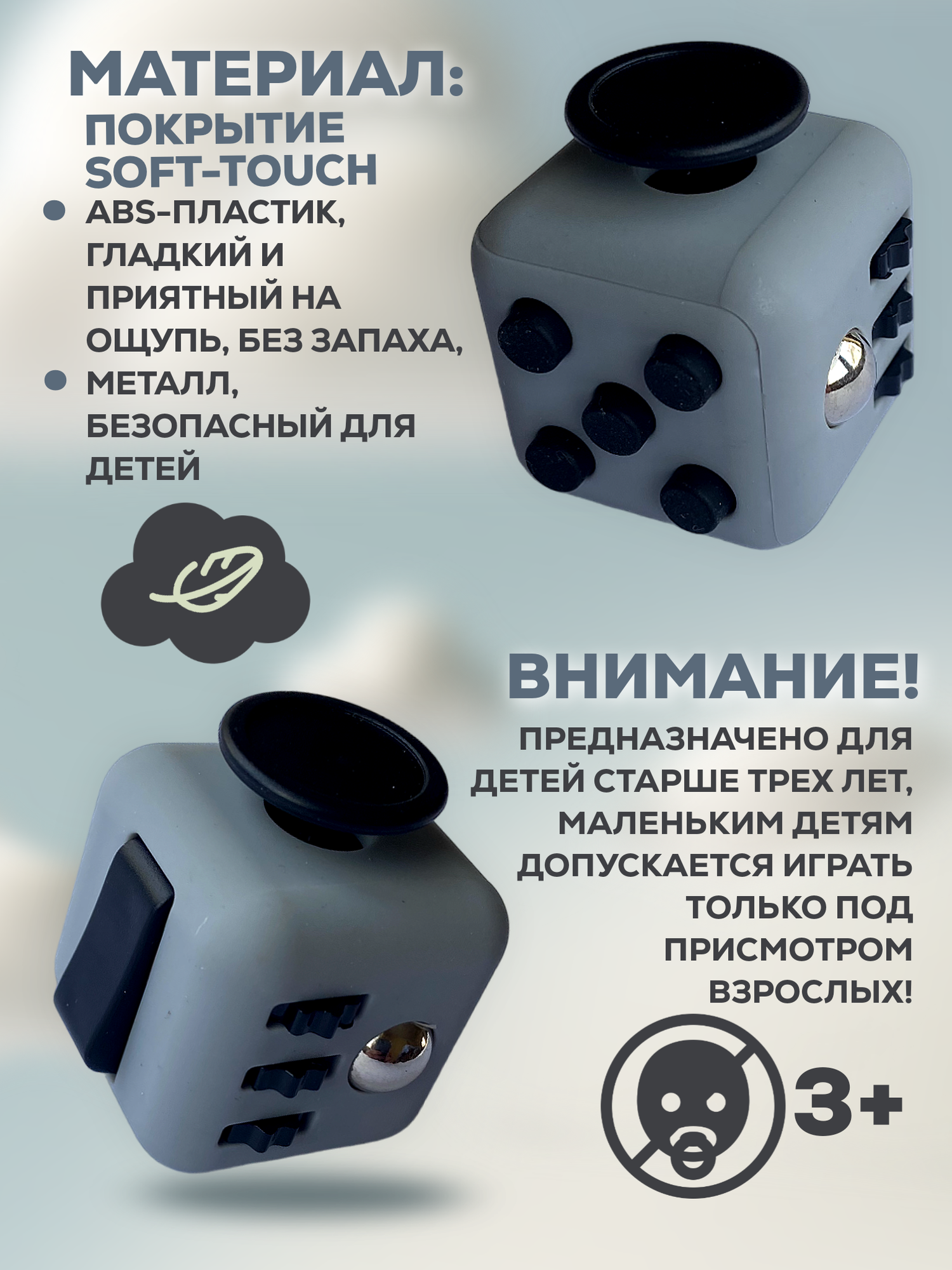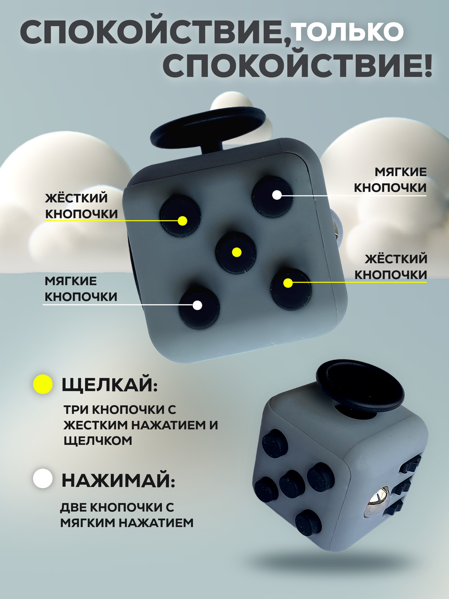 Отзывы на Кубик антистресс с кнопками для рук успокаивающий фиджет куб fidget серый