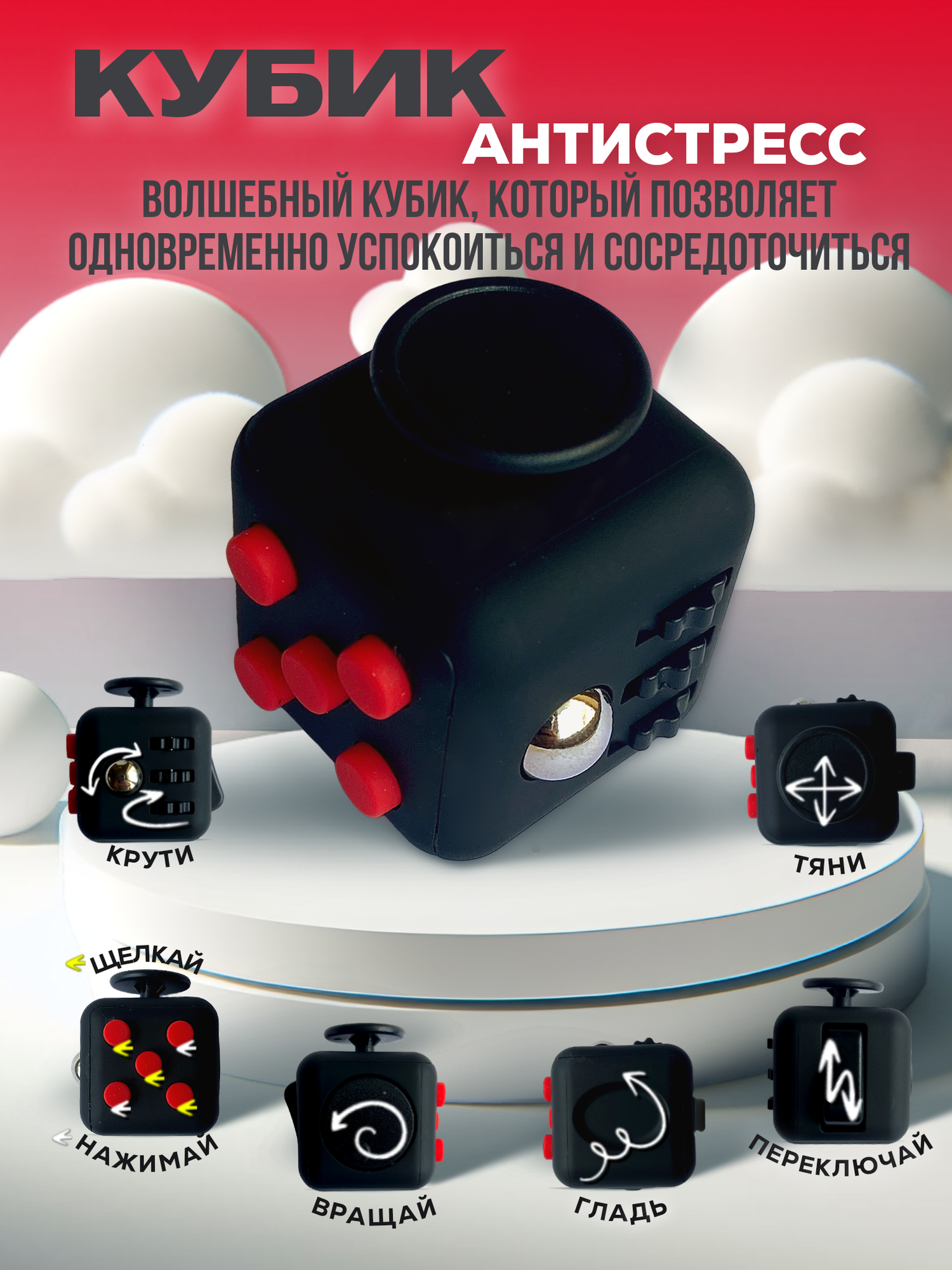 Отзывы на Кубик антистресс с кнопками для рук успокаивающий фиджет куб fidget Черный с красными