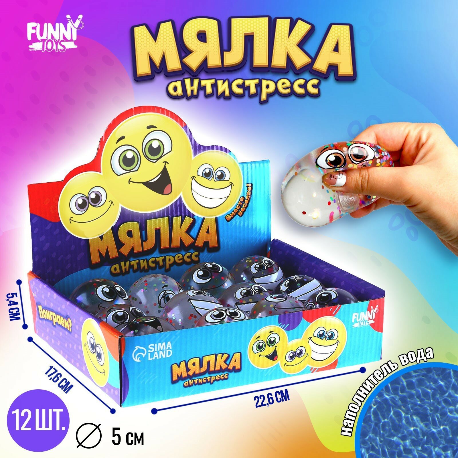 10 цен на Мялка-антистресс"Смайлики" блестки, микс