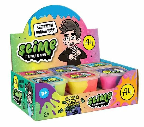 10 цен на Слайм шоу-бокс Slime Влад А4 3 вида (12 шт в шоубоксе цена за 1 шт!)