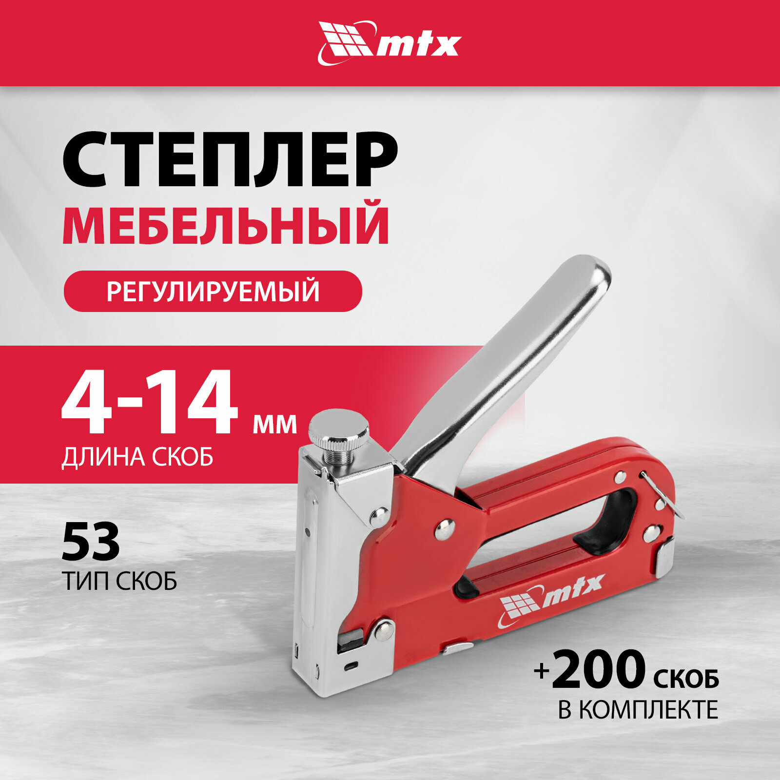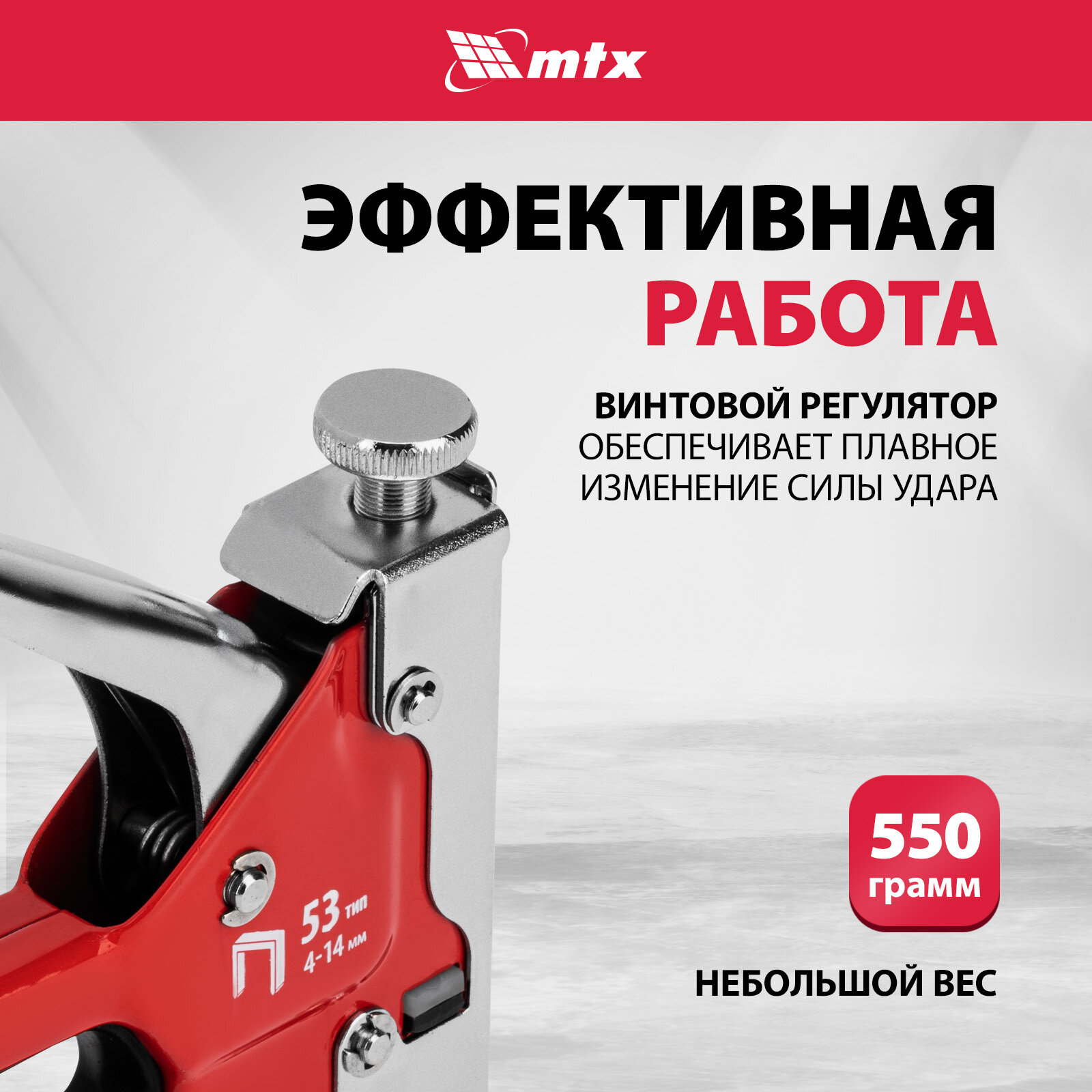 10 цен на Степлер строительный MTX, со скобами 53, 4-14 мм (200 штук), регулировка силы удара, 420029