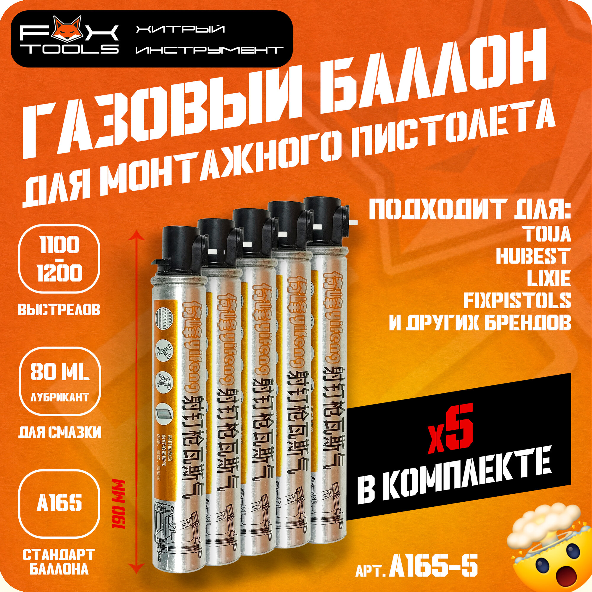 Баллоны на 5 000 гвоздей для монтажного пистолета TOUA, HYBEST, LIXIE, Fix Pistols и др. А165мм информация: