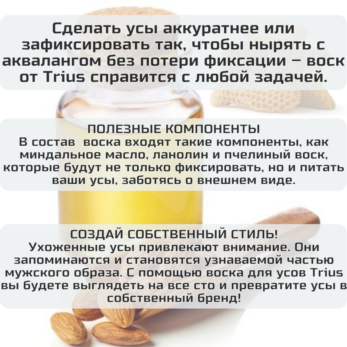 10 цен на Триус Питающий воск для усов сльной фиксации Без запаха, Trius Moustache Wax 15 мл