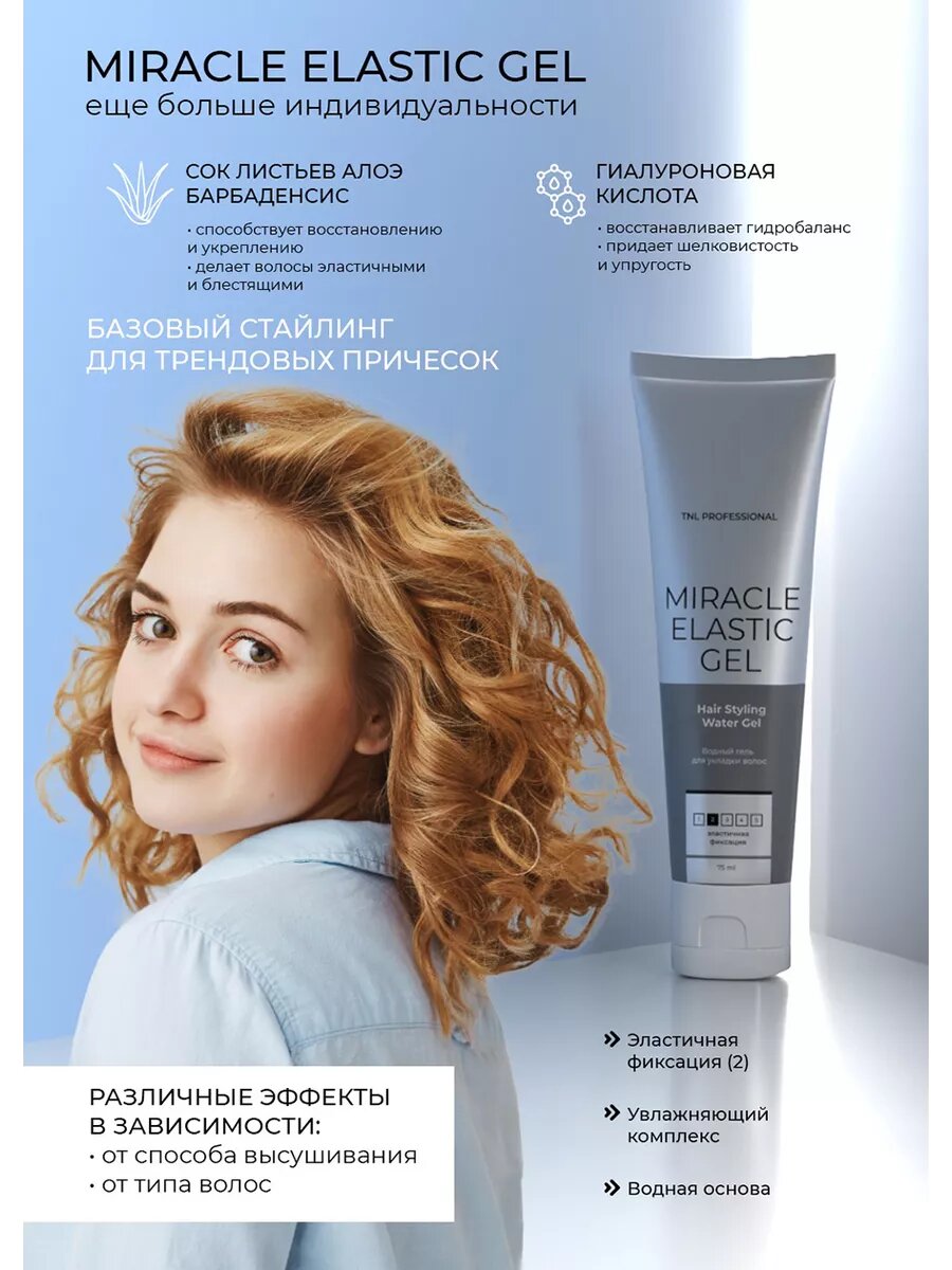 TNL, Miracle Elastic Gel - водный гель для укладки волос (эластичная фиксация), 75 мл информация: