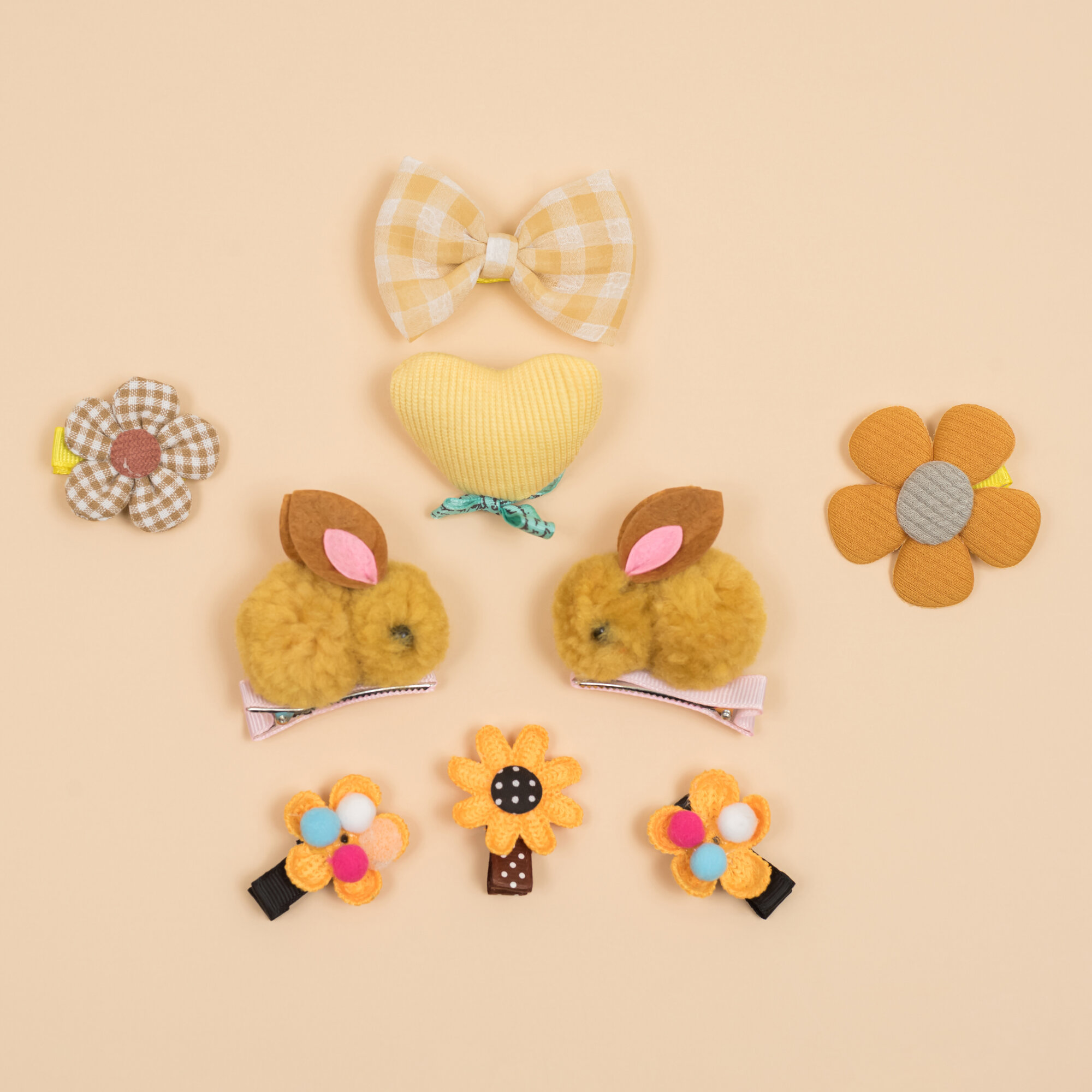 Набор детских заколок Croco Gifts, зажимы из ткани и искусственного меха, 9 шт., желтый, оранжевый, бежевый информация: