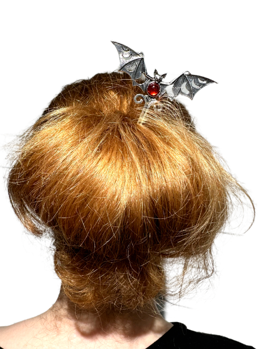 Японская заколка для волос в готическом стиле Меч Летучая мышь с красным камнем информация: