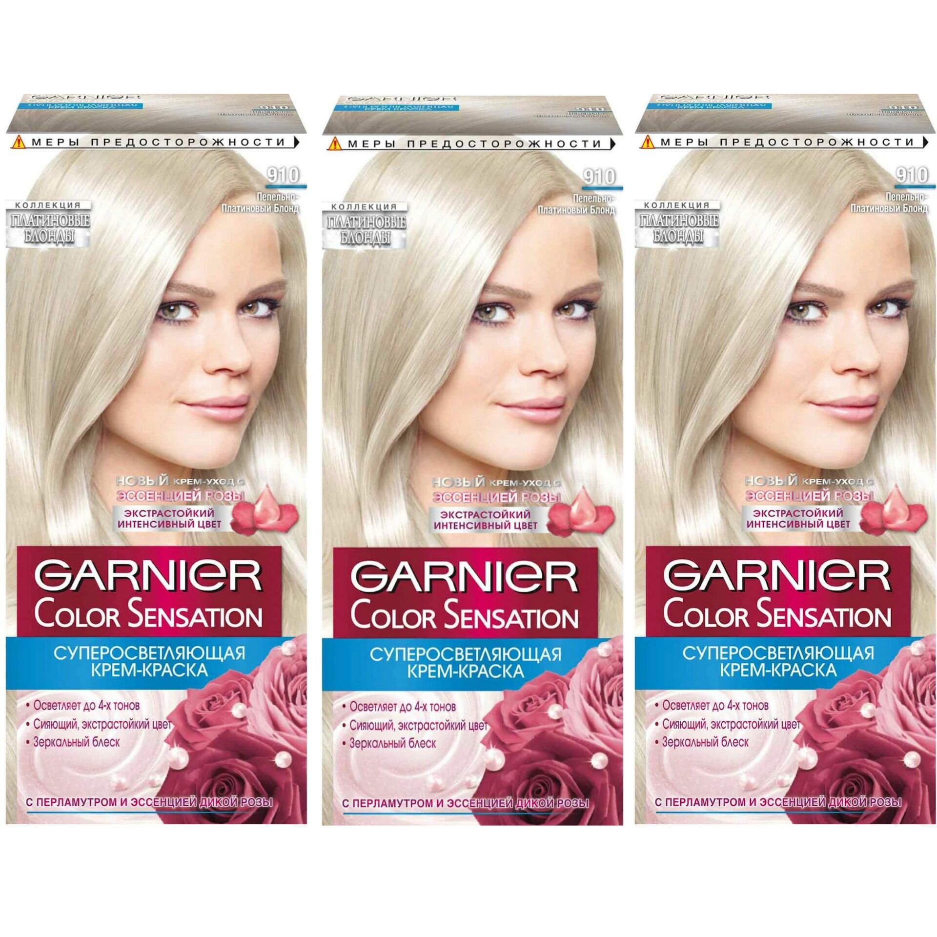 GARNIER Краска для волос Color Sensation Роскошный цвет, 910 Пепельно-платиновый блонд, 110 мл, 3 шт 2 216 ₽