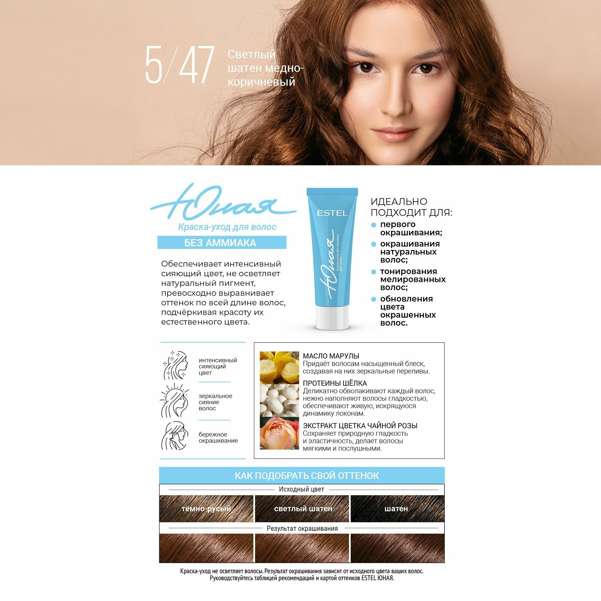 ESTEL Юная Краска-уход без аммиака для волос, 5/47 светлый шатен медно-коричневый информация:
