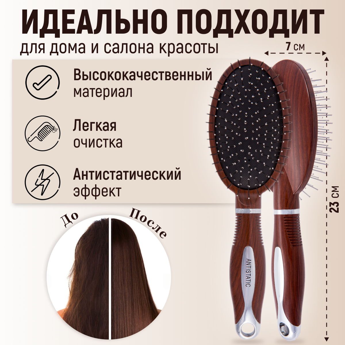 Quilin Расческа для волос массажная с металлическими зубчиками. Анатомическая ручка.