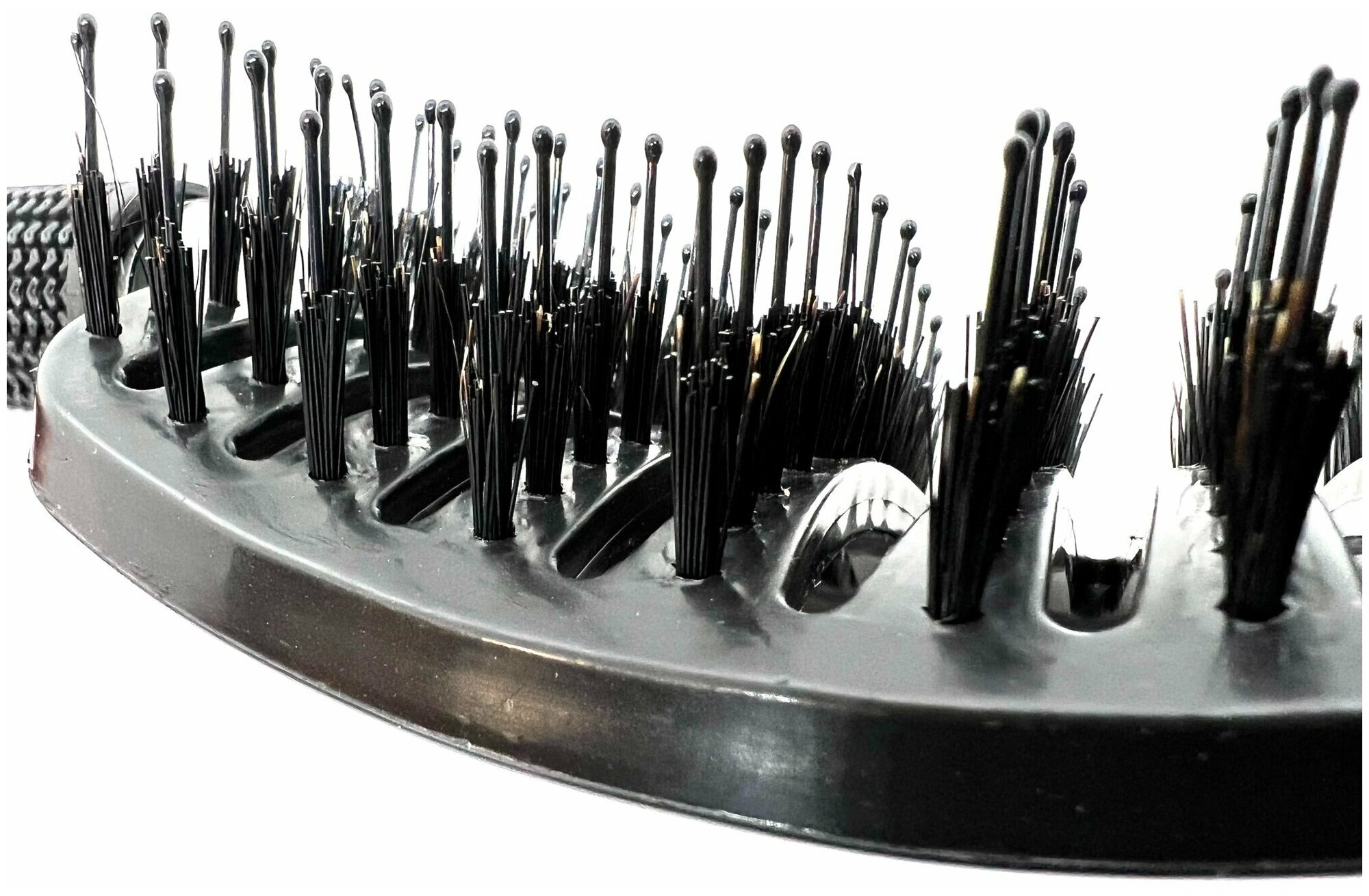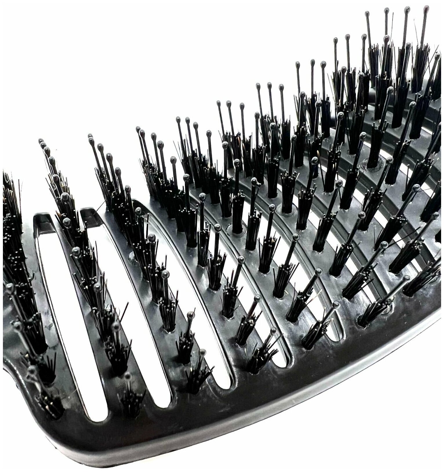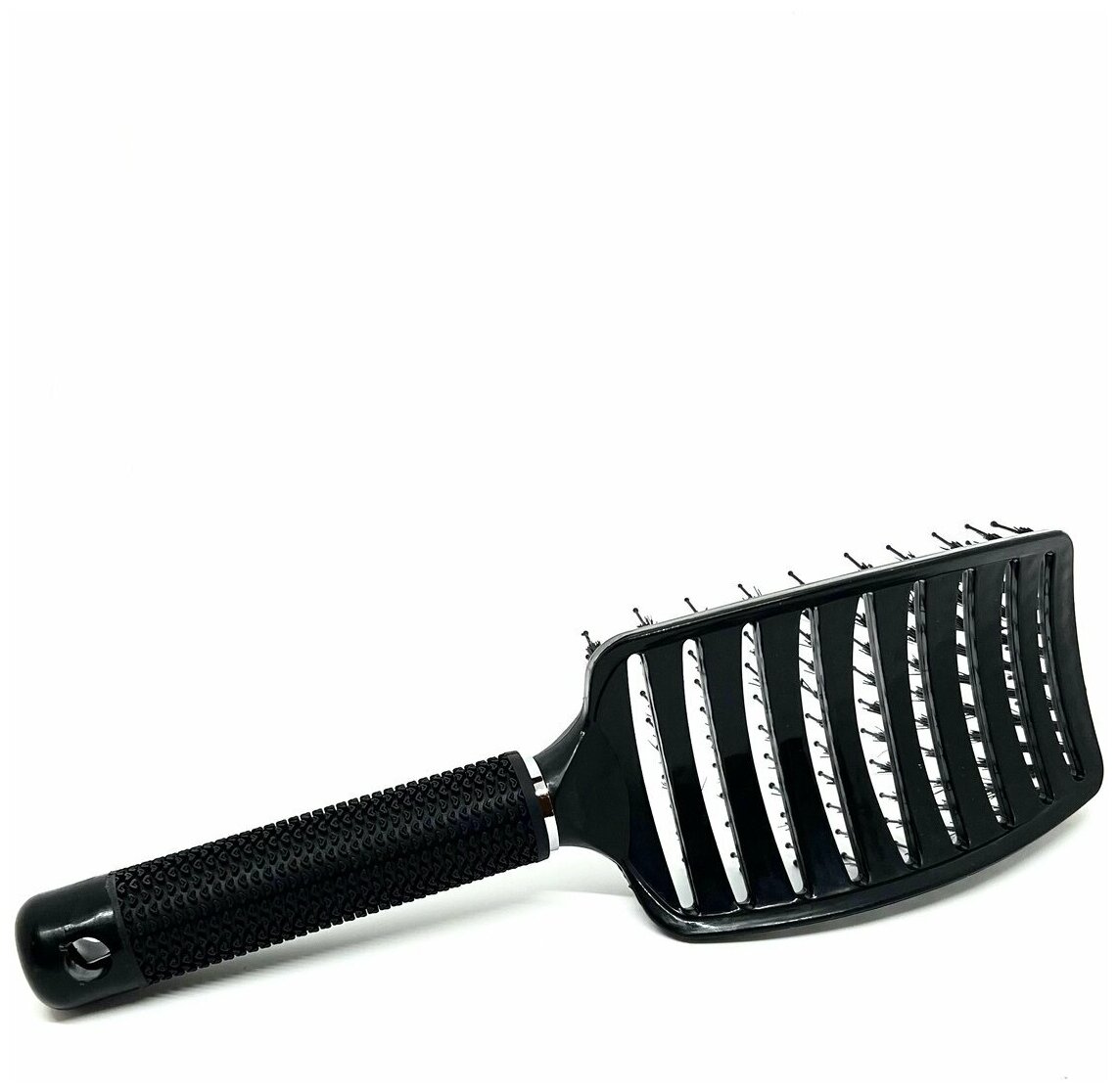 Расческа продувная профессиональная, с щетиной, антистатическая, изогнутая, черная информация: