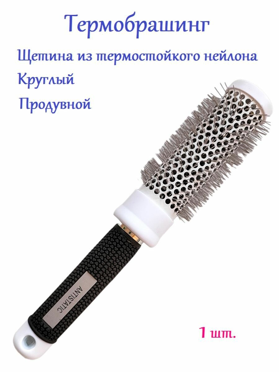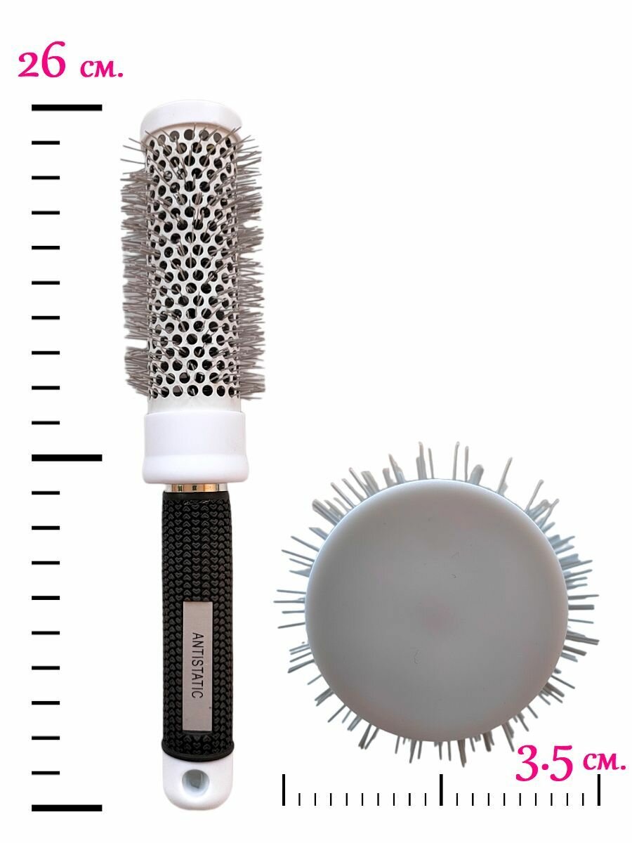 Расческа брашинг с нейлоновой щетиной, белая, диаметр 3.5см. информация:
