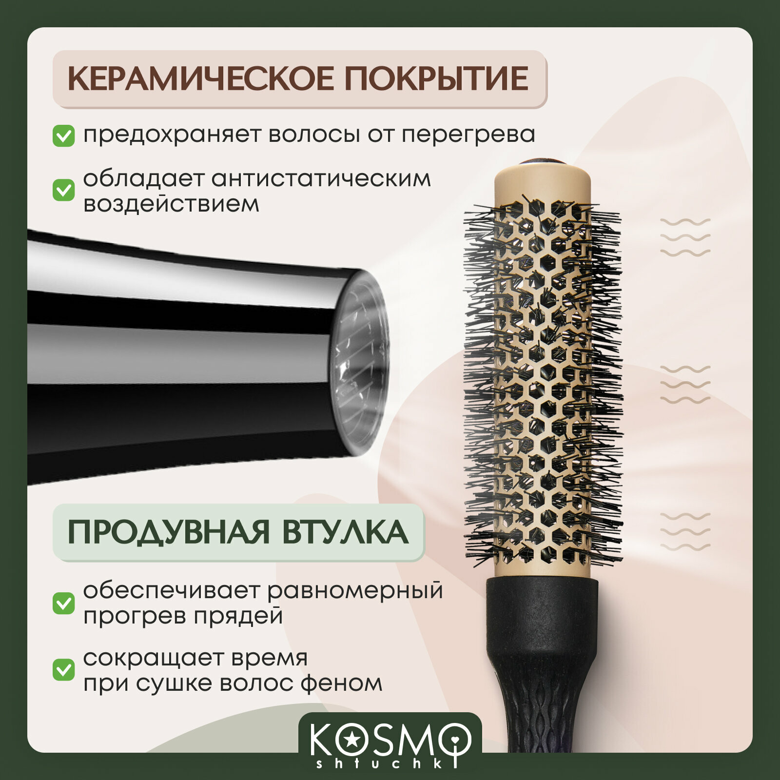 KosmoShtuchki Термобрашинг с керамическим покрытием 34 мм БИО, брашинг для укладки волос