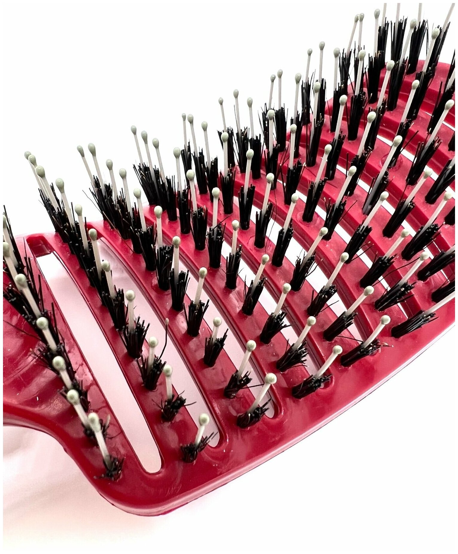 Расческа продувная профессиональная, с щетиной, антистатическая, изогнутая, красная информация: