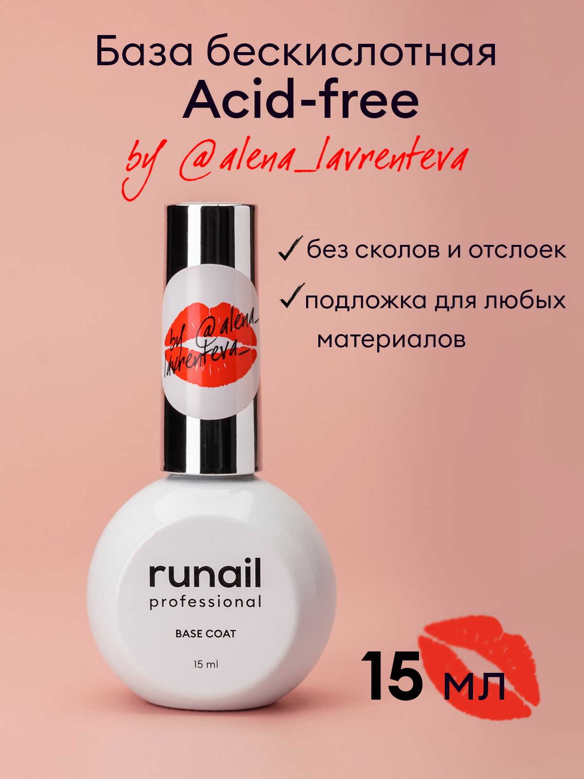 База бескислотная прозрачная/ база для ногтей/база для маникюра и педикюра Acid-free Base Runail, 15 мл №8805 информация: