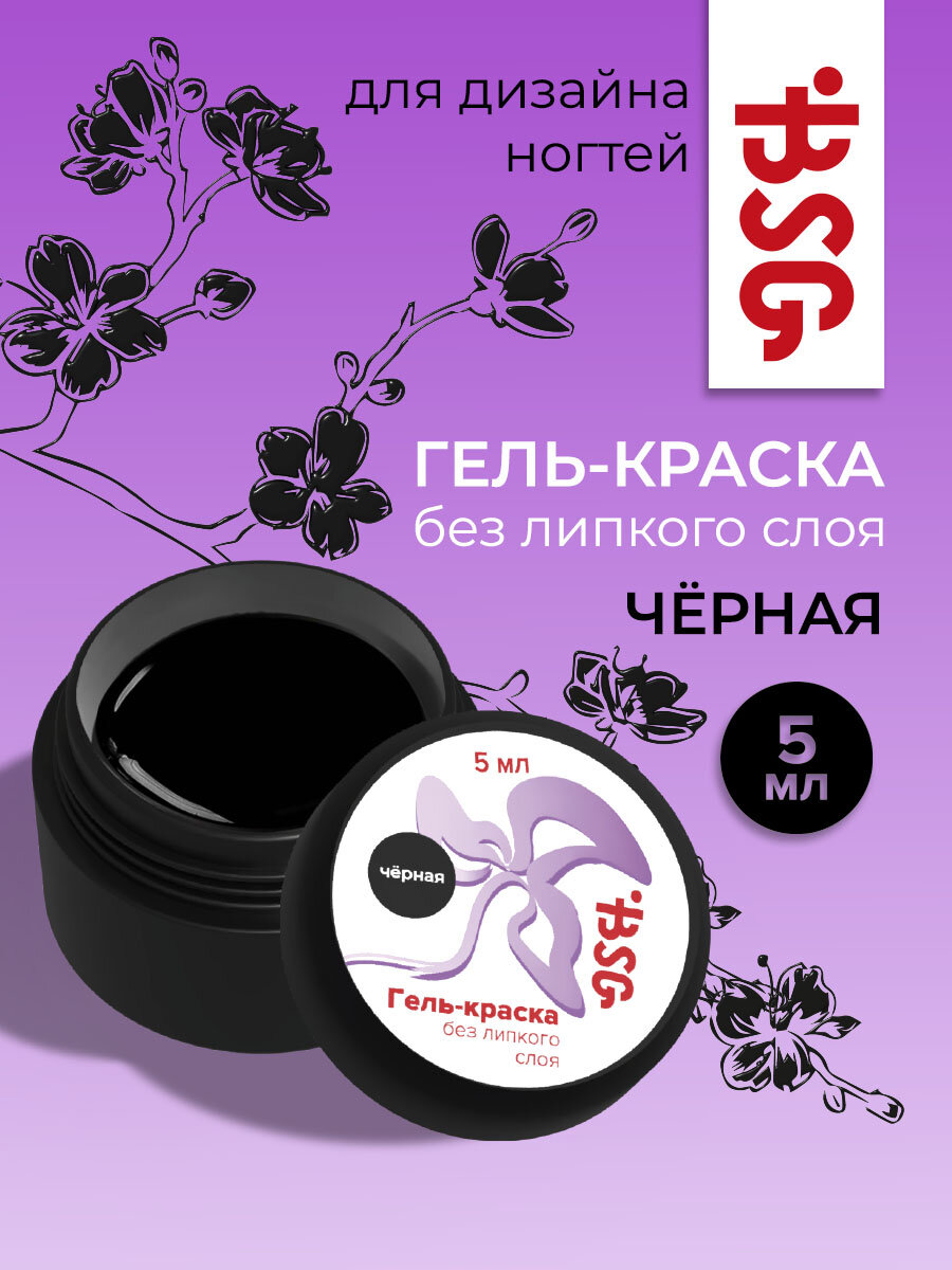 Гель-краска для ногтей BSG без липкого слоя - Чёрная информация: